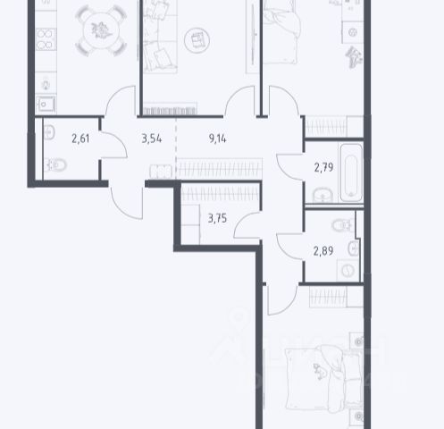 • ✓ В базе Циан 309 3-комнатных квартир в кирпично-монолитном доме рядом с метро Зябликово