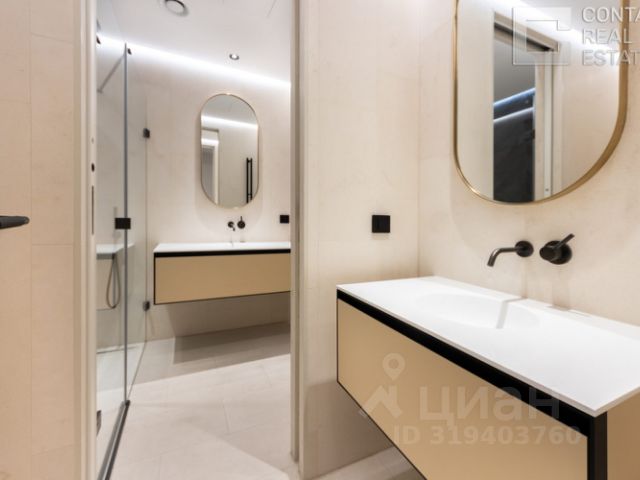 На полу инженерная доска , на стенах светлая краска, сан узлы из натурального камня, скрытые напольные плинтусы и межкомнатные двери в эмали, система центрального кондиционирования под потолком, теплые полы и терморегуляторы, потолочная подсветка зон в гостиной, в спальнях и в ванных комнатах. В санузлах выполнена полная отделка и комплектация.