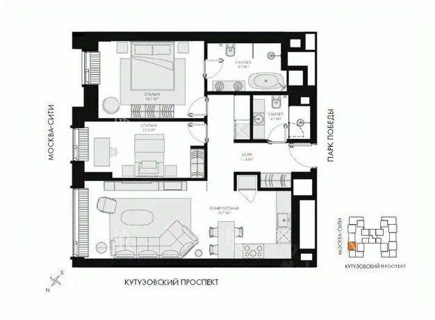 Апартаменты с двумя спальнями общей площадью 69 м² в комплексе премиум-класса "Поклонная, 9" на десятом этаже. Апартаменты с готовой дизайнерской отделкой. Планировка: просторная кухня-гостиная, две спальни, два санузла, холл. Благодаря панорамным окнам пространство наполнено светом. Из окон открываются живописные виды в сторону Мосфильмовской. Эксклюзив. Главное о доме. "Поклонная 9" — премиальный городской дом с сервисом пятизвёздочного отеля. На нижних этажах работает SO/ Moscow: круглосуточные сервисы, room service, spa, хаммам, сауна, бассейн, фитнес и рестораны. Выше — апартаменты с панорамными окнами и видами на Парк Победы, Москву-Сити, Воробьёвы горы и Кутузовский проспект. На самом верху — коллекция пентхаусов Club 100. Архитектура сочетает мотивы неоклассики и ар-деко, вспоминает московские высотки и нью-йоркские небоскрёбы; Н-образный силуэт и облицовка натуральным камнем создают монументальный образ. Внутри — дизайнерские отделки на выбор, продуманная входная группа и клубная инфраструктура, чтобы не разрывать день на поездки по делам. Это адрес для тех, кто хочет жить у большого парка и пользоваться отельным уровнем комфорта каждый день. Главное о локации. Здесь день начинается в Парке Победы. Утром бегают по аллеям, слушают воду у каскада фонтанов "Годы войны", днём дети изучают военную технику под открытым небом и заходят в Музей Победы, вечером включается мягкая подсветка воды и панорама площади с Триумфальной аркой. Поблизости — длинные маршруты у воды и видовые точки на башни делового центра и главный корпус университета. Это спокойный западный центр, где всё важное решается пешком, а недели складываются из прогулок, спорта и музеев. Комментарий эксперта. Меня зовут Екатерина Левина — брокер компании Whitewill. Я отвечаю за продажу этого лота. Свяжитесь со мной, чтобы получить расширенную презентацию, больше фотографий или договориться о просмотре. Могу провести экскурсию по локации и познакомить вас с этим домом. ID 309 842.
