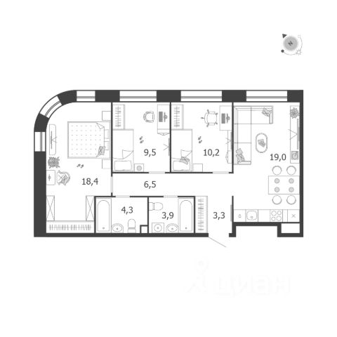 • ✓ В базе Циан 29 3-комнатных квартир в кирпично-монолитном доме в очереди 3-я в жилом комплексе Шагал