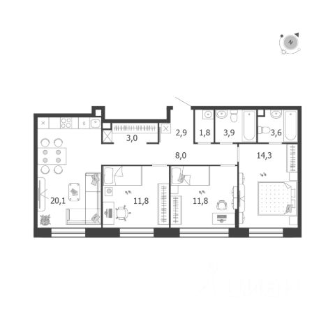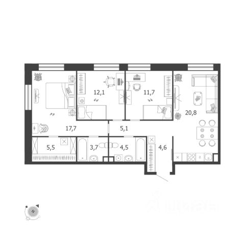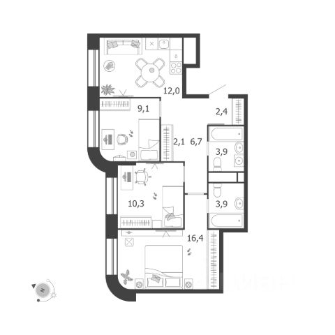 Продаётся 3-комнатная квартира в строящемся доме (Корпус 5 (3 очередь)), срок сдачи: IV-кв. 2026, общей площадью 84.3 кв.м., на 9 этаже. Это город в городе, который не подстраивается под старые рамки, а задает новую планку и стандарт жилого района в России. Здесь создается самодостаточная и цельная среда, в которой есть место для реализации потребностей каждого жителя. Архитектура и общественные пространства района спроектированы на основе ежедневных сценариев жизни конкретных пользователей. Весь район спроектирован на основе принципа 15-минутной доступности необходимой инфраструктуры и продуманных прогулочных маршрутов. Разнообразие пешеходных маршрутов и короткие расстояния между основными точками притяжения дают возможность резидентам Shagal больше передвигаться пешком, не выпадая из ритма большого города. При этом разноформатная транспортная сеть района и безопасный скоростной режим создают комфортные условия для перемещений любым другим способом: на автобусе, на машине, на велосипеде.