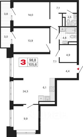 Функциональная планировка подразумевает 1 изолированную спальню, гостиную, отдельную кухню, 2 санузла 1 раздельный + 1 совмещенный.