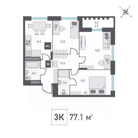 с большoй кухней 10,2 метpa, раздельным санузлом, клaдoвкoй