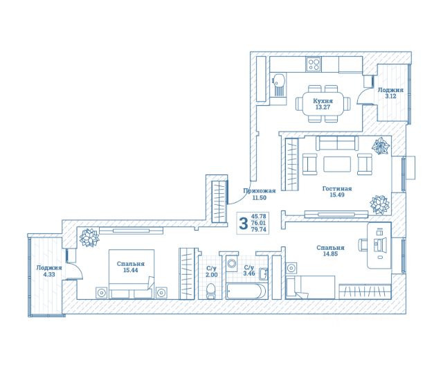 Продаётся 3-комнатная квартира 15, площадью 69,55 м², на 4 этаже в ЖК "Пехра" корпус 8.1. Стоимость — от 12969442 руб. Квартира без отделки, планировка угловая, окна во двор.