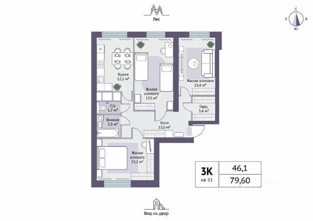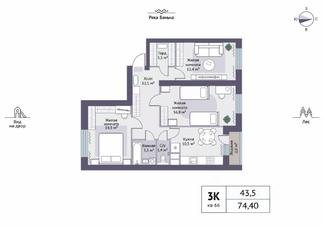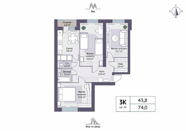 Продаётся 3-комнатная квартира в сданном доме (Дом 1), срок сдачи: IV-кв. 2024, общей площадью 79.6 кв.м., на 5 этаже. Жилой комплекс "Новое Замитино" строится в деревне Сабурово, в Красногорском городском округе Московской области. Расположен в 11 км от МКАД, 1,5 км от Пятницкого шоссе, 4 км от Волоколамского шоссе. Ближайшая станция метро "Пятницкое шоссе" расположена в 7 км от комплекса. Остановка маршрутного такси в шаговой доступности, маршрутные такси курсируют с интервалом 10 минут. В комплексе возводятся три корпуса (строительные номера 1,15 и 17) на улицах Садовая и Луговая и детский сад. Дома 4 этажные. Материал наружных стен - облицовочный кирпич гладкий и керамический щелевой блок, перекрытия - сборная железобетонная плита. Высота потолка 2,8 м. В секциях корпусов от 3х до 8 квартир на этаже, в каждой секции лифт повышенной грузоподъемности (630 кг). Современная отделка мест общего пользования. В ЖК можно приобрести квартиры от одной до 3-х комнат, площадью от 30 до 75 м. В каждой квартире, имеется лоджия площадью от 2 до 2,6 м2 с панорамным остеклением в пол. Проект предусматривает планировочные решения с оптимальным зонированием пространства. В квартирах производится внутренняя разводка сети газоснабжения с установкой индивидуального счетчика отечественного производства, установкой и подключением двух контурного газового котла мощностью до 24 кВт. Один контур идет на нагрев горячей воды, второй на отопление квартиры, существенно снижая расходы на коммунальные услуги. В перспективных планах развития территории деревни Сабурово строительство новой школы в шаговой доступности от комплекса на 1350 человек, ДОУ и муниципальной поликлинники. Проектом благоустройства жилого комплекса учтены потребности членов всей семьи - созданы места отдыха, игровые пространства для детей, спортивные комплексы для подростков, у каждого подъезда установлены велопарковки. Места парковок и хозяйственного бытовых потребностей проживающих зонированы с учетом защищенности мест отдыха и игр. Наличие большого количества природных зон - лесопарковых массивов и водоемов и заповедных зон, расположенных вблизи деревни Сабурово (Красногорский лес, Парк- Заповедник Захарьинская пойма, парк Митино) является благоприятным фактором проживания в ЖК Новое Замитино. Продается 3-комнатная квартира Куркинское шоссе.