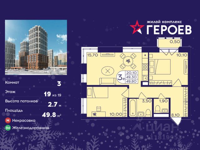 Продаётся 3-комнатная квартира в формате евро 52.70 кв. м. в жилом комплексе "Героев" в Балашихе, Железнодорожный. Квартира расположена на 5 этаже 410 корпуса. В наличии квартиры с отделкой. Всего 40 минут до центра Москвы. При покупке квартиры в сданном доме ключи выдаются сразу! Жилой квартал "Героев" - это уютный проект для семей с детьми. В квартале созданы все условия для досуга всех возрастов: игровые и спортивные площадки, места для отдыха и прогулочные зоны. За 15 минут можно дойти от дома до Ольгинского лесопарка, популярного места для отдыха на свежем воздухе. На территории жилого комплекса уже открыт детский сад на 250 мест и началось строительство еще одного - для 220 малышей, а также школы для 1320 учеников. Рядом работают магазины, кафе, супермаркеты, пункты выдачи. Преимущества: • В уютных светлых квартирах с просторными кухнями-гостиными удобно встречать гостей и проводить время наедине друг с другом. • Благодаря увеличенному остеклению в комнатах много света. • Квартиры продаются с отделкой, можно заселяться сразу после получения ключей. Купить 3-комнатную квартиру Носовихинское шоссе.