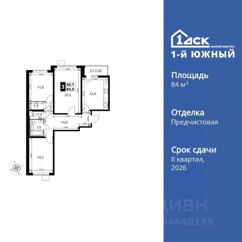 Прямая продажа от застройщика! Жилой Комплекс класса Комфорт Плюс. Продаётся 3-к квартира номер 453 общей площадью 84.3 кв.м. на 20-м этаже 24 этажного здания. Предчистовая отделка. Цена с учётом скидки. Особенности квартиры: - МЦД-5 в пешей доступности - Квартал с собственной набережной - Свои 2 детских сада и школа - Организуем показ в удобное для вас время! - Просторная спальня, в которой можно разместить большую кровать. - Гостевой санузел - комфорт и удобство для ваших гостей. - Просторная кухня - место для семейных ужинов и кулинарных экспериментов. - Просторная мягкая зона - комфорт и уют для отдыха всей семьи. - Гардеробная - удобство для хранения и организации вещей. - Ниша под шкаф - компактное и удобное место для вещей. - Лоджия - уютное место для отдыха и тишины. Квартира с предчистовой отделкой. Вам не придется заниматься черновыми и трудоёмкими работы, а чистовую отделку и дизайн - сделайте на свой вкус. Информация о комплексе: ЖК "1-й Донской" в 7 км от МКАД: гармония городского комфорта и природы. Квартиры на 2-3 стороны света, форма секций и разная этажность создают динамичную архитектуру. Тёплая палитра фасадов и подсветка подчеркивают образ. Рядом - Ермолинский парк, Видновский лесопарк и Жуковский парк. Природа воздействует на все уровни восприятия: от видов до звуков и ароматов. Идеальный баланс для жизни в гармонии с окружающей средой. Транспортная доступность: Комплекс удобно расположен в 7 км от МКАД по трассе М-4 Дон (через Видное). Расстояние до Каширского шоссе составляет 12 км. Добраться до метро и центра Москвы позволяет развитая сеть маршрутов общественного наземного транспорта. Действующая ж/д станция Калинина Павелецкого направления в 15-17 минутах ходьбы (МЦД-5 в 2025-2026 гг). Внутренняя инфраструктура: "1-й Донской": продуманная среда в развивающемся районе. На территории - муниципальные школа и 2 детских сада, поликлиника, торговый центр с площадью для мероприятий. Сеть пешеходных маршрутов ведёт к магазинам и кафе, отделённым от дорог зелёными фито-стенами. Сквозные подъезды с панорамным остеклением и входами с улицы и двора наполнены светом. Всё для комфортной жизни в шаговой доступности, от повседневных нужд до общественных пространств. Квартира с предчистовой отделкой - ваш дизайн без черновых работ