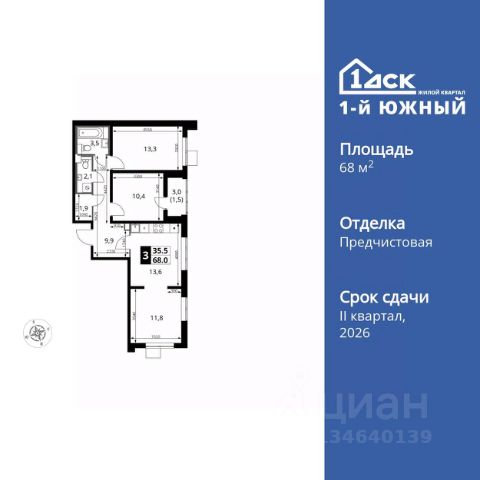 Прямая продажа от застройщика! Жилой Комплекс класса Комфорт Плюс. Продаётся 3-к квартира номер 130 общей площадью 69.2 кв.м. на 6-м этаже 23 этажного здания. Предчистовая отделка. Цена с учётом скидки. Особенности квартиры: - МЦД-5 в пешей доступности - Квартал с южным садом - Свои 3 детских сада и 2 большие школы - Организуем показ в удобное для вас время! - Просторная спальня, в которой можно разместить большую кровать. - Угловая планировка - больше пространства для ваших идей. - Увеличенное количество окон - дополнительное освещение и свежий воздух. - Гостевой санузел - комфорт и удобство для ваших гостей. - Евроформат - просторное и удобное жилье с отличной планировкой. - Линейная кухня - функциональность и практичность в одном решении. - Возможность добавить спальное место - дополнительный комфорт для гостей. - Гардеробная - удобство для хранения и организации вещей. - Ниша под шкаф - компактное и удобное место для вещей. - Лоджия - уютное место для отдыха и тишины. Квартира с предчистовой отделкой. Вам не придется заниматься черновыми и трудоёмкими работы, а чистовую отделку и дизайн - сделайте на свой вкус. Информация о комплексе: ЖК от 1-го ДСК: евро формат, большие застеклённые лоджии и умный дом. Управляйте светом и техникой через Яндекс.Станцию, защита от протечек. Удачная локация: транспортная доступность и природа рядом. В каждом дворе - плодовые деревья, весной цветут яблони и груши, зимой - лыжня среди заснеженного леса. Транспортная доступность: - Общественный транспорт: Действующая ж/д станция Булатниково (в перспективе будущая МДЦ D5) в пешей доступности, всего 10-12 минут. - Личный автотранспорт: Удобный выезд на трассу М4-Дон в сторону Москвы и области 850 м, до МКАД - 1 км Внутренняя инфраструктура: "1-й Южный": продуманные подъезды с панорамным остеклением и входами с улицы и двора. Безбарьерная среда для родителей с колясками и маломобильных жителей. В каждом подъезде - колясочные, лапомойки, санузлы, место для консьержа. На территории: 3 детских сада и 2 школы под окнами, пешеходный бульвар-дендрарий для прогулок, центральная площадь для мероприятий. Всё для комфортной жизни, общения и активностей в шаговой доступности. Квартира с предчистовой отделкой - ваш дизайн без черновых работ