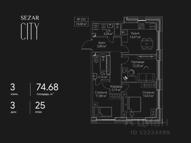 Продается 3-комнатная квартира в ЖК SEZAR CITY на 4 этаже. Общая площадь квартиры составляет 85,2 кв.м. Квартира без отделки. Срок сдачи - 2027 год. Архитектурный облик SEZAR CITY в полной мере выражает глубокую философию ар-деко, в основе которой - красота, удовольствие и комфорт. Облик каждого дома деликатно продолжает традиции величественной архитектуры зданий на престижных магистралях Москвы. В рельефной пластике экстерьеров корпусов особенно эффектно выделяется арочный стиль. Комбинации материалов и форм, обилие элементов декора придают фасадам зданий собственный неповторимый облик и изысканно дополняют их грацию. Планировки всех квартир спроектированы по стандартам премиум-класса, когда функциональность помещений дополняет высокий комфорт проживания. Элементы лобби тщательно продуманы, чтобы впечатлять и вдохновлять. Пространство каждого лобби оформлено дорогими материалами и мебелью. В большинстве квартир предусмотрены эркеры и просторные лоджии. Для комфорта жителей предусмотрен подземный паркинг с кладовыми помещениями и автомойкой. В каждом лобби расположена стойка консьержа. В концепции приватных дворов лежат узнаваемые элементы и формы классических парковых пространств, в т. ч. амфитеатры, аркады и галереи. SEZAR CITY - новый проект компании, в полной мере сочетающий в себе все качества недвижимости особой ценности. Преимущества локации: - Хорошевский район - это престижный и динамично развивающийся район Москвы с богатой историей. Здесь открываются транспортно-пересадочные узлы, строятся деловые кластеры, создаются новые общественные пространства и парки. - SEZAR CITY находится в самом центре Большого Сити. Концепция развития этой территории предусматривает формирование принципиально нового городского центра с современной общественно-жилой застройкой. Позвоните сегодня в офис продаж, и мы с удовольствием пригласим вас в гости. Менеджер подробно расскажет о преимуществах жилого комплекса за чашкой ароматного кофе. Продам 3-комнатную квартиру на проезде 2-й Хорошевский в Москве.