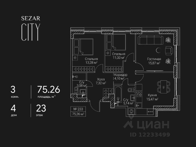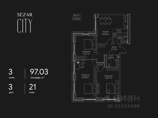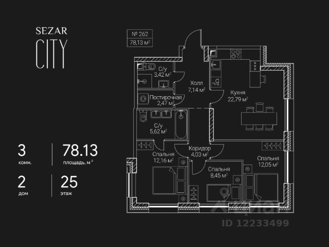 Продается 3-комнатная квартира в ЖК СЕЗАР СИТИ на 36 этаже. Общая площадь квартиры составляет 94,78 кв.м. Квартира без отделки. Срок сдачи - 2027 год. Архитектурный облик СЕЗАР СИТИ в полной мере выражает глубокую философию ар-деко, в основе которой - красота, удовольствие и комфорт. Облик каждого дома деликатно продолжает традиции величественной архитектуры зданий на престижных магистралях Москвы. В рельефной пластике экстерьеров корпусов особенно эффектно выделяется арочный стиль. Комбинации материалов и форм, обилие элементов декора придают фасадам зданий собственный неповторимый облик и изысканно дополняют их грацию. Планировки всех квартир спроектированы по стандартам премиум-класса, когда функциональность помещений дополняет высокий комфорт проживания. Элементы лобби тщательно продуманы, чтобы впечатлять и вдохновлять. Пространство каждого лобби оформлено дорогими материалами и мебелью. В большинстве квартир предусмотрены эркеры и просторные лоджии. Для комфорта жителей предусмотрен подземный паркинг с кладовыми помещениями и автомойкой. В каждом лобби расположена стойка консьержа. В концепции приватных дворов лежат узнаваемые элементы и формы классических парковых пространств, в т. ч. амфитеатры, аркады и галереи. СЕЗАР СИТИ - новый проект компании, в полной мере сочетающий в себе все качества недвижимости особой ценности. Преимущества локации: - Хорошевский район - это престижный и динамично развивающийся район Москвы с богатой историей. Здесь открываются транспортно-пересадочные узлы, строятся деловые кластеры, создаются новые общественные пространства и парки. - СЕЗАР СИТИ находится в самом центре Большого Сити. Концепция развития этой территории предусматривает формирование принципиально нового городского центра с современной общественно-жилой застройкой. Позвоните сегодня в офис продаж, и мы с удовольствием пригласим вас в гости. Менеджер подробно расскажет о преимуществах жилого комплекса за чашкой ароматного кофе. Продам 3-комнатную квартиру на проезде 2-й Хорошевский в Москве.
