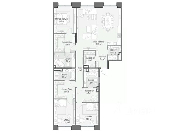 Выполнен современный ремонт. Квартира укомплектована мебелью и премиальной бытовой техникой брендов Neff, Asko, Liebherr. В ванной предусмотрена сантехника GSI Ceramica и Bossini Cosmo от итальянского производителя.