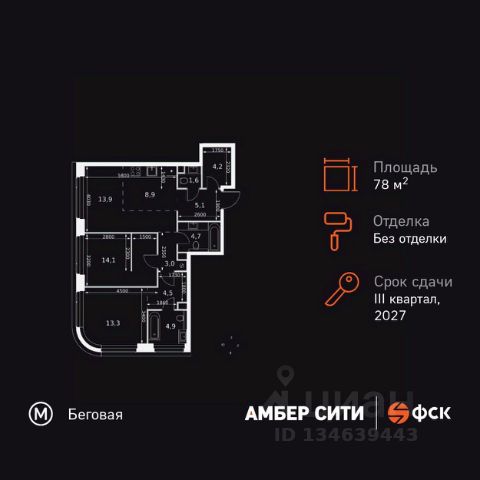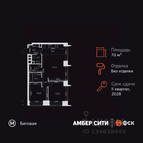 Прямая продажа от застройщика! Успейте забронировать квартиру до повышения стоимости! Жилой Комплекс премиум-класса. Продаётся 3-к квартира номер 668 общей площадью 68.7 кв.м. на 4-м этаже 57 этажного здания. Без отделки. Цена с учётом скидки. Особенности квартиры: - Организуем показ в удобное для вас время! - Угловая планировка - больше пространства для ваших идей. - Увеличенная ширина окна/окон - больше света и визуального простора. - Увеличенное количество окон - дополнительное освещение и свежий воздух. - Нестандартное окно - особенный акцент в вашем интерьере. - Увеличенная высота окна - больше воздуха и света. - Панорамное окно - создайте атмосферу открытости и простора. - Гостевой санузел - комфорт и удобство для ваших гостей. - Постирочная - организуйте пространство для стирки и сушки вещей. - Евроформат - просторное и удобное жилье с отличной планировкой. - Гибкая планировка - создайте пространство по своему вкусу. - Место для игры/занятия спортом - идеальное пространство для активных детей. - Можно оборудовать рабочее место - комфорт для работы и учёбы. - Просторная мягкая зона - комфорт и уют для отдыха всей семьи. - Линейная кухня - функциональность и практичность в одном решении. - Проходная кухня-гостиная - идеальное пространство для общения и готовки. - Ниша под шкаф - компактное и удобное место для вещей. Квартира без отделки. Чистый холст для воплощения интерьера вашей мечты. Информация о комплексе: ЖК "Амбер Сити" - вдохновляющий квартал у Москва-Сити с архитектурой мирового уровня. Здесь кипит жизнь 24/7: парки, инфраструктура и виды на центр без городской суеты. Самодостаточная среда для работы, творчества и семьи в духе лучших районов Нью-Йорка и Гонконга. Транспортная доступность: Квартал с исключительной транспортной доступностью: ключевые точки Москвы в 15-20 минутах. Полное погружение в деловую и культурную жизнь столицы с минимальными затратами времени на дорогу. Общественный транспорт: - Метро "Беговая" - 5 минут пешком - Остановка "2-й Хорошёвский проезд" - 3 минуты пешком - Метро "Звенигородская" (строящаяся) - 10 минут пешком На автомобиле: - Москва-Сити - 10 минут - Звенигородское шоссе - 3 минуты - ТТК - 5 минут - Серебряный бор - 8 минут - Садовое кольцо - 12 минут - Кремль - 20 минут - Шереметьево - 40 минут Внутренняя инфраструктура: ЖК "Амбер Сити": многоуровневый ландшафт на 6 гектарах с зелёным бульваром, объединяющим арт-объекты, водные зоны и архитектурные формы. В закрытых дворах на стилобате - детские площадки с сенсорными элементами, зоны отдыха с креслами и настилами для йоги. Навесы с подогревом и зарядками для зимнего сезона. Активности на любой вкус: настольный теннис, петанк, чтение в тишине на оборудованных скамейках. Продуманное пространство для ежедневного отдыха и игр детей и взрослых. Продам 3-комнатную квартиру на проезде 3-й Хорошевский в Москве.