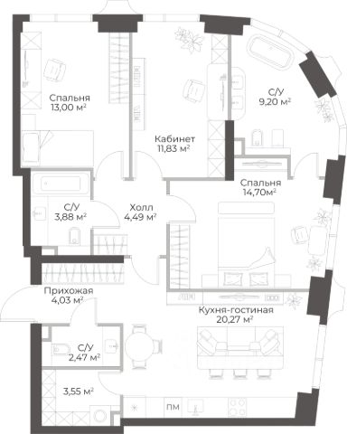 Продаётся 3-комнатная квартира в строящемся доме (Гранд Фили), срок сдачи: II-кв. 2029, общей площадью 98.71 кв.м., на 9 этаже.