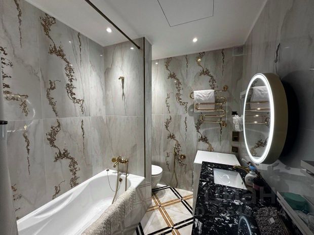 В ванной комнате эксклюзивные дизайнерские находки: раковина из искусственного мрамора и выложенная ниша из мелких камешков, находит отсылки к природным мотивам, а окно, как нельзя лучше, дополняет всю картину и озаряет светом все пространство. Высокие потолки, много воздуха, просторно и светло.