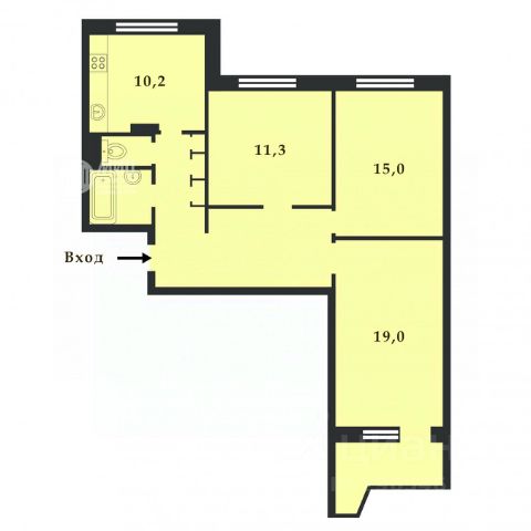 жилая площадь составляет 45.2 кв. м, большая кухня - 10.1 кв. м, и три изолированные комнаты ( 20-14,1-11,1), общая площадь с балконом 75 кВ. м.