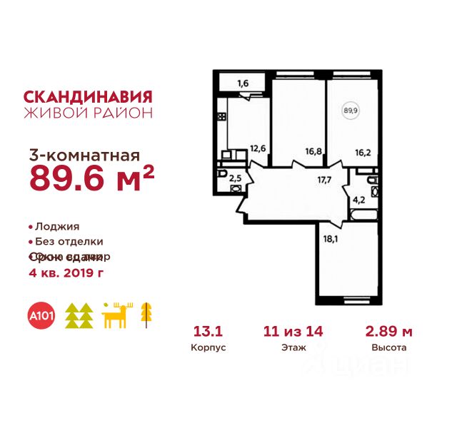 Продается трехкомнатная квартира 40 в новостройке Жилой район "Скандинавия" по адресу Москва, ТиНАО, Новомосковский АО, Сосенское С/П, Коммунарка пос., Москва, Сосенское поселение, Скандинавский бульвар, д. 8. Общая площадь квартиры - 89.60 кв. м., этаж 11 из 14, секция 1. Тип проекта, по которому построен дом - монолит, компания-застройщик - ООО "А101". Стоимость квартиры - 31534720 Р. ПРЕДЛОЖЕНИЯ ОТ ЗАСТРОЙЩИКА В НОЯБРЕ 2025: Ипотека от 13,9 % для всех! На весь срок. "Семейная ипотека" вернулась. Ставка от 3,5 % на весь срок! Без удорожания! Выгодное ипотечное комбо: Ипотека от 2200 р./мес. и от 6 % после рождения ребёнка! Ипотека для всех "Держи пять!" - ставка 5 % на 2 года! *более подробную информацию по скидкам и акциям уточняйте в отделе продаж ЖК "Скандинавия" на границе Бутовского лесопарка (1610 га) - это баланс качественного жилья и сервисов, зелёных пространств для активного и созерцательного отдыха. Выразительная архитектура и цветовая гамма монолитных корпусов комфорт- и бизнес-класса (8-17 этажей) созвучны скандинавским мотивам, органично интегрированы в великолепный природный контекст. Огороженные дворы свободны от машин, в них продуманы места для отдыха и работы на свежем воздухе, озеленение, детские и спортивные площадки. Для прогулок, встреч и районных праздников - площадь Туве Янссон с "сухим" фонтаном, вековыми дубами и единственным в мире памятником писательнице; пешеходный променад 2 км; 3 крупных природных ручья; более 15 км велосипедных и прогулочных дорожек с арт-объектами. Инфраструктура района включает современные школы и детские сады, центр впечатлений, фитнес-клубы, развивающие и творческие центры, магазины, кафе, салоны красоты. На подземных этажах - паркинги и кладовые. Преимущества "Скандинавии": - ст. метро "Потапово" - 100 м от ближайших домов (открыта!) - удобные выезды на трассу Солнцево - Бутово - Варшавское шоссе и ул. Бачуринская - свои школы и детские сады - инфраструктура на первых этажах и рядом с домом - лесопарк, природные водоёмы, прогулочные маршруты