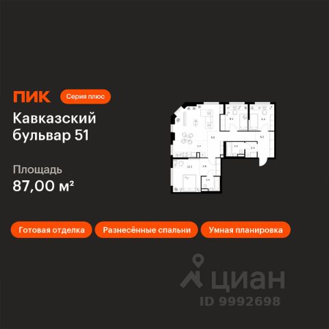 Продается трехкомнатная квартира 159 в новостройке ЖК "Русич Кантемировский" по адресу Москва, ЮАО, Царицыно, Кавказский бульвар, вл. 51/2, корп. 2. Общая площадь квартиры - 71.00 кв. м., этаж 3 из 26, секция 2. Тип проекта, по которому построен дом - монолит, компания-застройщик - Концерн "Русич". Стоимость квартиры - Р. Срок сдачи - 4 квартал 2026. Более подробная информация по телефону. Современный жилой комплекс класса бизнес-лайт "РУСИЧ Кантемировский" удачно расположен в обжитом районе Царицыно всего в 15 минутах пешком до двух станций метро. Удобное расположение рядом с трассой ЮВХ и Варшавским шоссе позволяет добраться до МКАД всего за 17 минут, а развитая инфраструктура района вместе с комплексным подходом к наполнению жилого квартала делает это место идеальным для жизни. Проект включает в себя шесть элегантных корпусов, высота которых варьируется от 17 до 32 этажей. Каждый фасад - это результат авторской архитектурной мысли, а дизайнерские лобби встречают вас атмосферой уюта и стиля. Премиальные отделочные материалы и передовые инженерные решения подчеркивают высокое качество жизни в этом комплексе. Концепция "двор без машин" создает безопасную и спокойную атмосферу: внутренние пространства огорожены и оснащены видеонаблюдением, а для автолюбителей предусмотрен современный паркинг на 291 машино-место. Дворы комплекса обещают стать настоящим оазисом: здесь появятся живописные прогулочные аллеи, уютные зоны для пикников и разнообразные спортивные и детские площадки. Центральная площадь с фонтаном, перголами и цветочными композициями станет излюбленным местом для встреч и отдыха. Еще одним значительным преимуществом является собственная школа на 900 мест и два детских сада, вмещающие 400 малышей. Вам не придется тратить много времени на покупки - рядом уже работают супермаркеты, рестораны и спортивные клубы, предлагая все необходимое для комфортной жизни. Жилой комплекс "РУСИЧ Кантемировский" гармонично сочетает в себе преимущества городской жизни и природную тишину. Всего в нескольких шагах от вашего нового дома раскинулся живописный заповедник "Царицыно", а также парки "Сосенки" и "Аршиновский", где можно насладиться свежим воздухом и спокойствием природы. Продается 3-комнатная квартира в районе Царицыно в Москве.