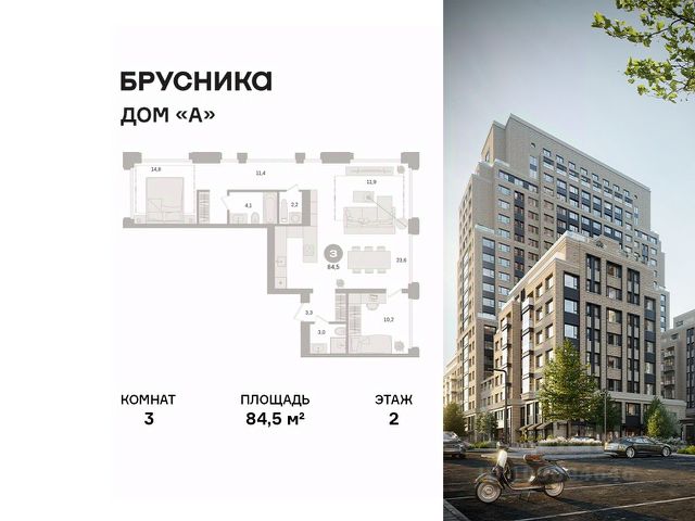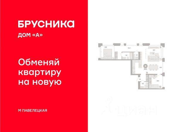 Цена указана с учётом скидки при 100%-й оплате, несубсидированной ипотеке, рассрочке (кроме программы "Рассрочка 0%"). В Даниловском районе столицы (ЮАО) продаётся 3-комнатная квартира площадью 57.70 кв.м без отделки. Квартира расположена на 2 этаже 27-этажного корпуса 14 в жилом комплексе бизнес-класса Левел Павелецкая Сити. Высота потолков 3.00м. Престижная локация Жилой комплекс бизнес-класса Левел Павелецкая Сити расположен в престижном Даниловском районе Москвы - историческом центре города в окружении парков, Москвы-реки и новейшей инфраструктуры. В 20 минутах пешком есть 3 станции метро, а в 5 минутах езды на авто - ТТК и Садовое кольцо. - 15 мин. пешком до метро "Павелецкая"; - 20 мин. пешком до станций "Тульская" и "Серпуховская"; - 8 мин. на авто до Кремля; - 10 мин. на авто до парка Горького и парка "Зарядье"; - 20 мин. на авто до башен "Москва-Сити". Авторская архитектура Авторская архитектура Авторская архитектурная концепция разработана бюро СПИЧ. Облик корпусов этапов 1 и 2 отсылает к стилистике архитектуры классического Нью-Йорка и золотой эпохи Голливуда. Корпуса этапа 4 вдохновлены эстетикой ар-деко. Умное линейное расположение корпусов гарантирует потрясающие виды на исторический центр и Москву-реку из большинства квартир. Дизайнерские лобби Изысканные интерьеры лобби жилого комплекса отсылают к классическим фильмам золотой эпохи Голливуда. Классика в жилом комплексе Левел Павелецкая Сити - не имитация, а современное осмысление лучшего в этом стиле. В каждом вестибюле оборудованы стойки ресепшен, комфортные зоны ожидания, гостевые санузлы, мойки для лап животных, колясочные. В корпусах по 3-4 лифта с прямым доступом в паркинг. Площадь лобби - от 47,9 до 114,9 кв. м, высота потолков - до 5,46 м. Благоустройство и инфраструктура Для создания благоустройства было приглашено 2 ведущих бюро - ADM и GAFA. Разноуровневое пространство вмещает в себя игровые площадки для детей всех возрастов, тропы здоровья для пеших прогулок, крытые аллеи с качелями, места для работы на свежем воздухе, многофункциональные спортивные площадки - зоны уличных тренировок, столы для пинг-понга, зоны командных игр. Общая площадь закрытого двора - 4,63 га. Комфорт - это когда рядом всё, что нужно для жизни. В жилом комплексе Левел Павелецкая Сити размещены 85 коммерческих помещений, где откроются супермаркеты, кафе, аптеки и многое другое. В составе проекта также предусмотрены собственный фитнес-клуб, развивающий центр Летово Кидс. Технологии и безопасность - Вайфай в лобби и на придомовой территории; - Автоматизированная система контроля и учета ресурсов; - Круглосуточное видеонаблюдение и охрана; - Круглосуточная связь с охраной через приложение, телефон или кол-центр; - Контроль доступа по биометрической системе распознавания лица; - Усиленный сотовый сигнал в лифтах и паркинге; - Распознавание номеров автомобилей при въезде/выезде в/из паркинга. Купить 3-комнатную квартиру на улице Дубининская в Москве.