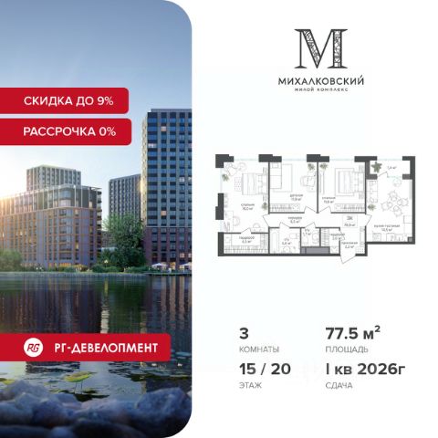 Ипотека для каждого! Полная стоимость кредита от 11,578% до 22,490%. Ставка от 0,11% в АО "Альфа-Банк" фиксируется на 1 год с даты заключения кредитного договора, далее полная стоимость кредита от 25,819% до 28,767% ставка 21,59% до окончания срока кредитования. Первоначальный взнос — от 20% от стоимости квартиры. Срок кредитования — от 3 до 30 лет. Скидка 9% при покупке квартиры! Цена указана с учетом максимального размера скидки. Идет выдача ключей. Продаётся 3-к квартира 85,5 кв.м. в ЖК "Михалковский" на 11-м этаже 15 этажного дома. Компания "РГ-Девелопмент" предоставляет скидки на квартиры в жилом комплексе. Акция действительна с 12.09.2024 г. до 15.11.25г. включительно. Для того чтобы воспользоваться предложением, необходимо подписать договор на приобретение недвижимости до 15.11.25г., включительно. Рассрочка 0% + Скидка 5% на готовые квартиры. Компания "РГ-Девелопмент" запускает комфортную программу рассрочки на квартиры в построенных корпусах. Предложение распространяется на квартиры со свободной планировкой в построенном корпусе 3. Условия: - Скидка 5% - Первый платеж — от 30% от стоимости объекта. - Оставшаяся сумма выплачивается не позднее 31.03.2026. Действует программа "Растет семья - растет и квартира". Прямая продажа от застройщика! Старт продаж новых корпусов. Квартиры без отделки. Срок сдачи корпуса - 3 кв. 2024 г. Особенности проекта: Завораживающие виды из окон Красивое благоустройство Уникальная локация для Москвы (рядом Головинский парк и пруды, усадьба Михалково) Рядом с центром Новый проект "РГ-Девелопмент" объединил в себе все необходимое для комфортной жизни в мегаполисе: узнаваемую архитектуру голландского бюро MLA+, близость зеленых зон, транспортную доступность, благоустроенную территорию с игровыми, спортивными площадками, подземный паркинг, детский сад. Название комплекса указывает на одну из самых привлекательных его черт - соседство со знаменитым имением Михалково, которое когда-то принадлежало известным и даже легендарным для российской истории людям. Это проект c выходом в живописный Головинский парк с пятью прудами привилегия, доступная немногим. Позвольте себе роскошь жить в месте, где создавалась история и когда-то проводили свой досуг знаменитые династии Дашковых и Паниных. Продам 3-комнатную квартиру в районе Головинский в Москве.