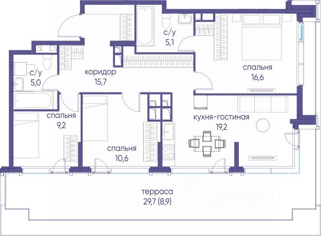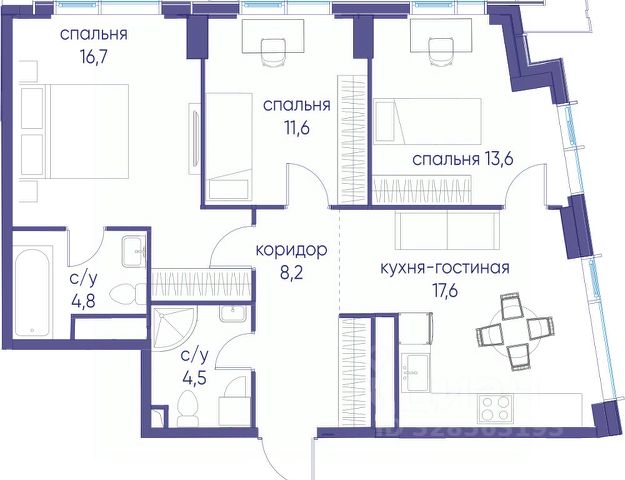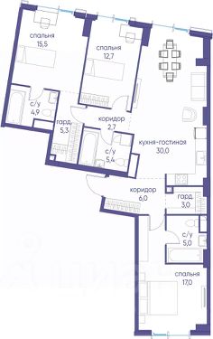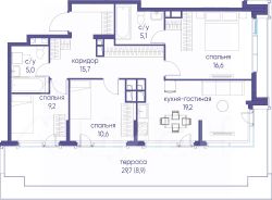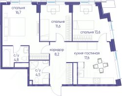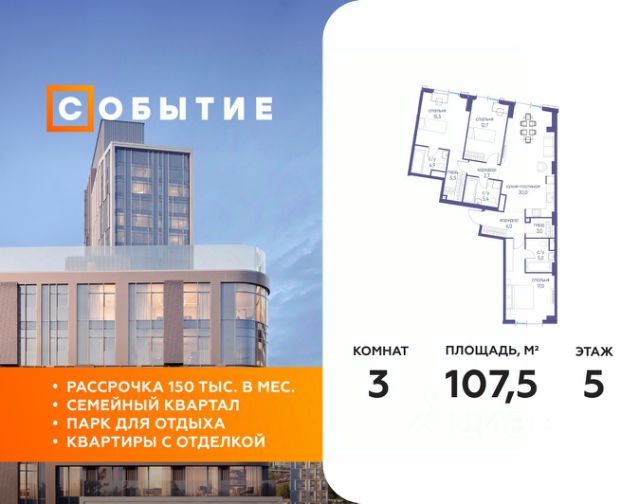 В продаже 3-к квартира от застройщика. Общая площадь 100.80, жилая 44.90, кухня 24.3. Квартира расположена на 8 этаже жилого квартала "Событие-6", корпус 1, Секция 1. Квартира без отделки. Срок сдачи: 4 кв. 2029 года. СОБЫТИЕ.6 — финальный дом парк-квартала СОБЫТИЕ на Мосфильмовской. Переезжайте в уже сформированный квартал с готовой инфраструктурой и парком! Премиальный жилой комплекс в престижном районе Москвы предлагает стильную архитектуру, продуманное благоустройство и великолепно разнообразие общественных пространств. Свой парк прямо возле дома! Архитектура Архитектура СОБЫТИЯ.6 выполнена в ультрасовременном стиле московским бюро Atrium на основе дизайн-кода британских архитекторов LDA Design и UHA London. Дом отличает оригинальная геометрия фасадов, большое остекление и высокие лобби (до 6,2 м) с авторской мебелью и светильниками. Расположение Мосфильмовская улица (Раменки) — один из престижных районов Москвы. Близость к историческому и деловому центру, природным зонам Запада столицы. Транспортная доступность: • 10 мин до Москва-Сити и ТТК; • 15 мин до Садового кольца; • 25 мин до аэропорта Внуково; • 7-10 мин до станций метро "Аминьевская" и "Мичуринский проспект". Инфраструктура: • парк "Событие" (12 га, финалист конкурса Правительства Москвы) с беговыми (1,5 км) и велодорожками (2,7 км), экотропой (1,6 км), площадками, лекторием; • школа, детский сад, магазины, салоны красоты, рестораны (к моменту заселения); • мультидвор с игровыми и спортивными площадками, мини-бульваром; • общественная терраса на 10-м этаже (коворкинг, лаунж); • Закрытые общественные пространства: детская комната, спортивный зал, коворкинг, лаунж-зоны. Паркинг 256 мест для жителей (48 — для электромобилей), 24 гостевых (5 — для электромобилей), мойки колес, кладовые, зоны для велосипедов. Окружение Парки и заповедники (Воробьёвы горы, Матвеевский лес и др.), МГУ, театр им. Н. И. Сац, стадион "Лужники". Безопасность Видеонаблюдение, контроль доступа, видеодомофоны, консьерж-сервис 24/7, системы пожарной безопасности и мультисервисная оптическая сеть.