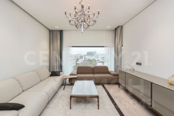 Пентхаус с 3 спальнями, с премиальной финишной отделкой, находится на 7 этаже Клубного дома TURGENEV. Данный лот располагает двумя входами в квартиру. Один вход ведет в прихожую-холл (14,62 м2), второй - в зону столовой (40,84 м2) и дополнительной кухни для персонала (5,38 м2). Панорамные окна двух спален (23,49 м2 и 31,73 м2), просторной столовой, кабинета (19,54 м2) и гостиной с дровяным камином (66,08 м2) выходят на юго-запад, на тихий переулок Малый Головин. Вдоль столовой, кабинета, гостиной и двух спален протянулась открытая галерея (13,78 м2). На галерее можно организовать зону для отдыха (столик, кресла, шезлонги), где будет приятно сидеть с чашечкой кофе и любоваться Москвой. Панорамные окна третьей спальни (33,47 м2) с дровяным камином и с собственной открытой галереей (2,07 м2) выходят на восточную сторону - во внутренний двор-сад с фонтаном и водными каналами. В каждой комнате предусмотрены места для хранения. Помимо ванной комнаты (8,73 м2), в квартире расположено два санузла с душем, гостевой санузел и постирочная. Дом сдан.