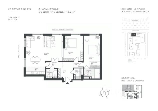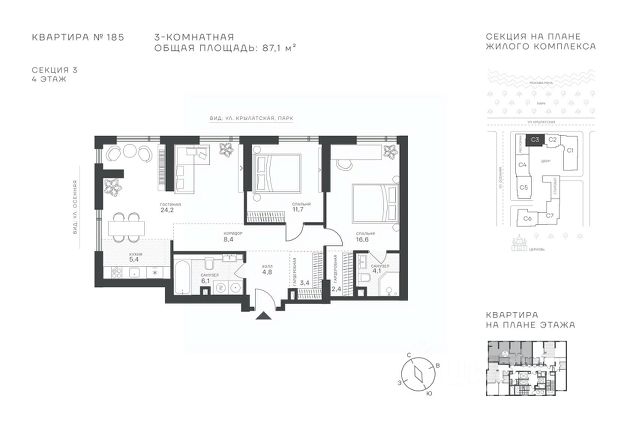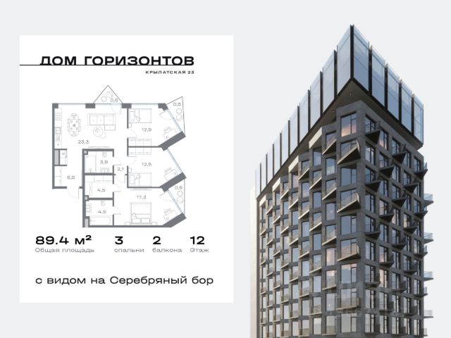 Успейте стать частью уникального проекта премиум-класса на западе Москвы! В продаже квартиры: 1-комнатные от 28,1 м²; 2-комнатные от 61,2 м²; 3-комнатные от 86,6 м²; 4-комнатные от 110,7 м². Первый взнос от 30%! Рассрочка на 2 года без переплат! Крылатское 33 это премиальный жилой комплекс от специализированного застройщика ООО "Сияние". Самый высокий небоскрёб в районе, достигающий отметки в 150 метров и малоэтажный клубный формат высотой от 42 метров на приватной территории площадью 1,4 га. Великолепные виды на излучину Москва-реки, Живописный мост и урбанистический облик города. Эксклюзивные форматы квартир с панорамным остеклением и патио-террасами. Двухуровневый паркинг на 271м/м, премиальные входные группы, ресторан высокой кухни, детский сад и эко-маркет на территории комплекса. Эксклюзивные преимущества: доступ к wellness-центру, коворкингу и клубной гостиной только для резидентов. Над проектом работали именитые российские архитектурные бюро: архитектор проекта бюро "Остоженка", планировочные решения от бюро Александры Федоровой. Расположение Пешком: 5-7 минут - до парка Звезд, Крылатского парка и набережной Москвы-реки; 15 минут - до метро Крылатское Арбатско-Покровской линии; 15 минут - до пристани Крылатская. На автомобиле: 10 минут - до Третьего транспортного кольца; 15 минут - до Садового кольца и Москва- Сити; 20-30 минут - до Аэропорта Внуково; 30-40 минут - до Аэропорта Шереметьево. В 300 метрах от комплекса - удобная транспортная развязка с проспектом Маршала Жукова, обеспечивающая легкий доступ к ключевым магистралям. Благоустройство: Просторная общественная гостиная; Коворкинг с кофе-баром, комфортные переговорные зоны с быстрым wi-fi, зарядными устройствами и библиотекой; Пространство friends lab для организации клубных мероприятий; Wellness-центр с фитнес-залом и массажными кабинетами; Ресторан высокой кухни; Частный детский сад; Детское кафе; Современный детский playhub; Спортивные площадки; Гипоаллергенный сад, безопасные водные пространства, декоративные пруды и сухие фонтаны; Высокоскоростные бесшумные лифты; Разделение зон для резидентов квартала и сервисного обслуживания. Окружение: - парки: Крылатские холмы, природно-исторический парк Москворецкий, Серебряный Бор; - учебные заведения: 5 образовательных комплексов, в которые входят 15 детских садов и 12 школьных корпусов. В удобной транспортной доступности гимназия им. Е. М. Примакова и международный лицей The International School of Moscow; - уникальные спортивные сооружения: гребной канал "Крылатское", легендарный велотрек "Крылатское", "Лата Трэк" для горнолыжников и сноубордистов, ледовый дворец "Крылатское"; - единственный в Москве парк развлечений под открытым небом, включающий более 70 вариантов досуга для любого возраста и времени года. Срок сдачи проекта: 2 квартал 2027 года. Финансирование и эскроу-счет обеспечены банком МКБ. Продам 3-комнатную квартиру в районе Крылатское в Москве.