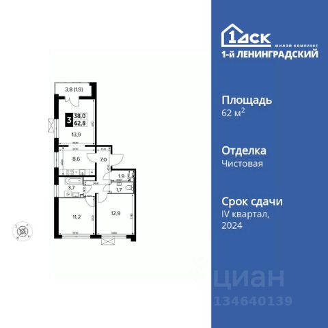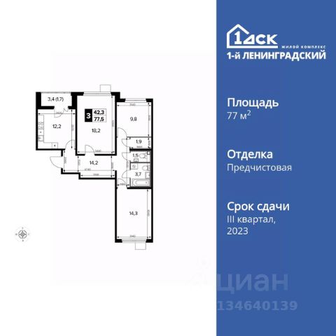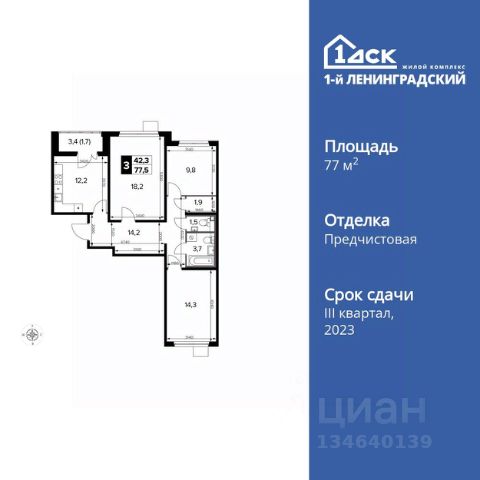 Прямая продажа от застройщика! Жилой Комплекс класса Комфорт Плюс. Продаётся 3-к квартира номер 467 общей площадью 77.8 кв.м. на 3-м этаже 15 этажного здания. Отделка Whitebox. Цена с учётом скидки. Особенности квартиры: - Просторная спальня, в которой можно разместить большую кровать. - Распашная планировка - отличное сочетание удобства и свободы. - Гостевой санузел - комфорт и удобство для ваших гостей. - Лоджия - уютное место для отдыха и тишины. - Панорамное остекление лоджии - открывает вид на окружающий мир. Квартира с предчистовой отделкой (White box). Вам не придется заниматься черновыми и трудоёмкими работы, а чистовую отделку и дизайн - сделайте на свой вкус. Информация о комплексе: В концепции благоустройства гармонично сочетаются черты двух городов. Территорию комплекса пронизали стрелы прогулочных бульваров, уменьшенные копии петербургских проспектов. Стремимся, чтобы каждый элемент ЖК был продуман, наполнен комфортом и заботой для всех жителей, включая четырехлапых. В каждой квартире подключен базовый пакет Умная квартира забудьте о беспокойстве о протечке; настройте свои сценарии управления техникой и электричеством; общайтесь с Умной квартирой голосом; Можете легко расширить базовый пакет и подключить дополнительные опции и устройства, чтобы из любой точки мира управляй работой бытовых приборов и систем, например: включайте разогрев ужина; регулируйте яркость яркость света; регулируйте громкость музыки; настраивайте работу теплых полов. Транспортная доступность: 15 минут пешком до станции Молжаниново (Планерная), МЦД3. Всего в 7 км от МКАД по Ленинградскому шоссе, сразу после пересечения с Международным шоссе. Внутренняя инфраструктура: Для детских игр и отдыха взрослых в квартале предусмотрено множество вариантов уютных московских двориков. Детские зоны отделены от взрослых, спортивные площадки и зоны воркаута с их шумными играми вынесены за пределы дворов. В обустройстве всех зон использованы только экологичные материалы. Оборудование для игровых площадок разрабатывалось с привлечением детских психологов. Для любителей велосипедов проложены велодорожки, ведущие к живописным прудам. Если же вам нужно в магазин, аптеку, а может, просто захотелось посидеть с семьей или друзьями в кафе по соседству - все необходимое расположено на первых этажах зданий с внешней стороны комплекса. Купить 3-комнатную квартиру на шоссе Ленинградское в Москве.