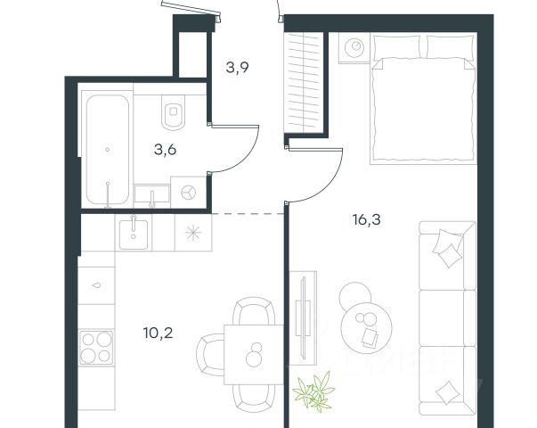 Собственник. Без комиссии. Двухуровневые апартаменты (не доля!) с полноценным высоким вторым этажом (не чердак, где только ползком на полусогнутых) общей площадью 22 кв м