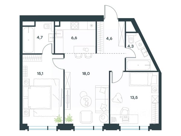 Цена указана с учётом скидки при 100%-й оплате, несубсидированной ипотеке, рассрочке (кроме программы "Рассрочка 0%"). В Академическом районе продаётся 3-комнатная квартира площадью 126.10 кв.м без отделки. Квартира расположена на 19-м этаже 19-этажного жилого комплекса бизнес-класса Левел Академическая (компания Level Group). Площади помещений определены кадастровым инженером по результатам обмеров. Отличная транспортная доступность: - 1 мин. пешком до станции метро "Академическая"; - 4 мин. на автомобиле до ТТК; - 8 мин. на автомобиле до Садового кольца; - 13 мин. на автомобиле до Кремля. Продуманный архитектурный проект: - современная архитектура от бюро UNK project; - высокие потолки в квартирах до 6,62 м; - окна в пол высотой 2,5-2,68 м с панорамным видом на МГУ, Москва-Сити и другие доминанты Москвы; - квартиры с моллированным остеклением - радиусные окна открывают увеличенный угол обзора; - более 20 вариантов планировочных решений; - уникальные квартиры с собственным патио и возможностью обустройства дровяного камина; - квартиры сдаются без отделки, что открывает свободу для создания интерьера по своему вкусу. Расположение: Камерный проект из 1 корпуса расположен тихом зеленом районе Москвы, в непосредственной близости к центру города. В округе построено 80 детских садов, 50 школ и 30 вузов, 7 из которых входят в топ100 вузов России: МГУ, МГИМО, РАНХиГС, МИСИС, РУДН, РЭУ им. Плеханова и РГУ нефти и газа им. Губкина. Этот район буквально утопает в зелени парков, начиная с уютного Академического в 6 минутах пешком и заканчивая одним из крупнейших в городе парком 50-летия Октября (12 минут на автомобиле). Общая площадь природных объектов в радиусе 2-6 км от дома - 476,5 га. Внутренняя инфраструктура: На территории жилого комплекса Левел Академическая откроется собственный торговый центр, а для отдыха жителей будут созданы общественные пространства: комфортное лобби с дизайнерской отделкой, окнами в пол и потолками высотой 4,5 м, а также две благоустроенные зоны - территория по периметру здания и пространство на стилобате. Во дворе на стилобате предусмотрены детская и спортивная площадки, коворкинг и лаунж-зона на открытом воздухе. Стилобат украсят скульптуры животных - жирафа, зайца и волка, которые станут ярким акцентом внутреннего двора жилого комплекса Левел Академическая, подчеркивая близость к музею Дарвина. Процент озеленения территории - 58%. Технологии и безопасность: Жителей жилого комплекса Левел Академическая не коснется ежегодное отключение горячей воды благодаря собственным центральным водонагревателям. Безопасность гарантирует круглосуточная охрана, безлимитный вайфай, круглосуточное видеонаблюдение. Удобное перемещение внутри комплекса будут обеспечивать 5 лифтов с доступом в паркинг с жилых этажей. п