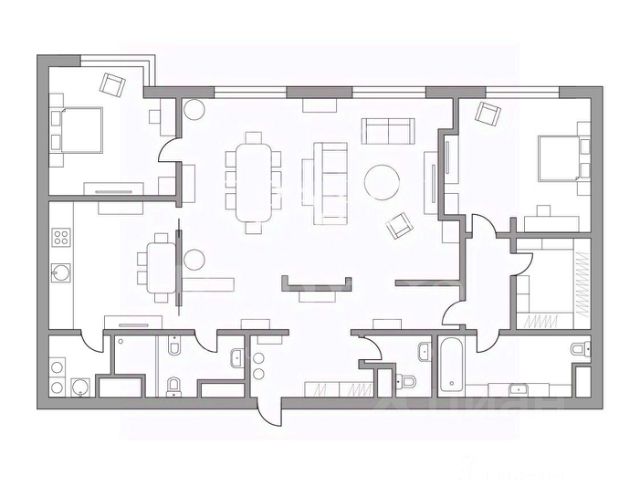 Идеально продуманная планировка разделяет квартиру на несколько зон: Прихожая с гардеробной, гостевой санузел, кухня-гостиная, рабочий кабинет. Окна выходят на улицу. Другая часть квартиры: Холл, спальня, гардеробная. Ванная комната с джакузи, душевая кабина, санузел. Окна спальни выходят в тихий двор. Ремонт выполнен из премиальных материалов.