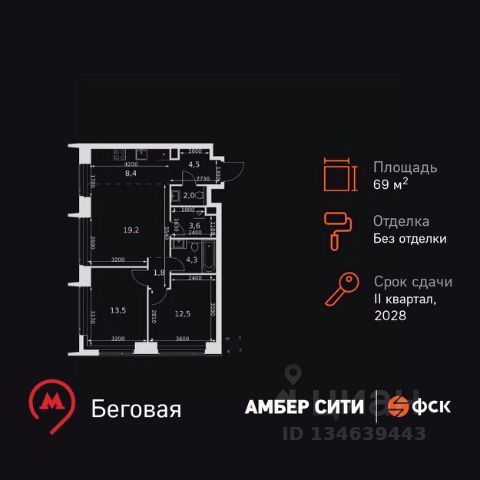 Прямая продажа от застройщика! Успейте забронировать квартиру до повышения стоимости! Жилой Комплекс премиум-класса. Продаётся 3-к квартира номер 668 общей площадью 68.7 кв.м. на 4-м этаже 57 этажного здания. Без отделки. Цена с учётом скидки. Особенности квартиры: - Организуем показ в удобное для вас время! - Угловая планировка - больше пространства для ваших идей. - Увеличенная ширина окна/окон - больше света и визуального простора. - Увеличенное количество окон - дополнительное освещение и свежий воздух. - Нестандартное окно - особенный акцент в вашем интерьере. - Увеличенная высота окна - больше воздуха и света. - Панорамное окно - создайте атмосферу открытости и простора. - Гостевой санузел - комфорт и удобство для ваших гостей. - Постирочная - организуйте пространство для стирки и сушки вещей. - Евроформат - просторное и удобное жилье с отличной планировкой. - Гибкая планировка - создайте пространство по своему вкусу. - Место для игры/занятия спортом - идеальное пространство для активных детей. - Можно оборудовать рабочее место - комфорт для работы и учёбы. - Просторная мягкая зона - комфорт и уют для отдыха всей семьи. - Линейная кухня - функциональность и практичность в одном решении. - Проходная кухня-гостиная - идеальное пространство для общения и готовки. - Ниша под шкаф - компактное и удобное место для вещей. Квартира без отделки. Чистый холст для воплощения интерьера вашей мечты. Информация о комплексе: ЖК "Амбер Сити" - вдохновляющий квартал у Москва-Сити с архитектурой мирового уровня. Здесь кипит жизнь 24/7: парки, инфраструктура и виды на центр без городской суеты. Самодостаточная среда для работы, творчества и семьи в духе лучших районов Нью-Йорка и Гонконга. Транспортная доступность: Квартал с исключительной транспортной доступностью: ключевые точки Москвы в 15-20 минутах. Полное погружение в деловую и культурную жизнь столицы с минимальными затратами времени на дорогу. Общественный транспорт: - Метро "Беговая" - 5 минут пешком - Остановка "2-й Хорошёвский проезд" - 3 минуты пешком - Метро "Звенигородская" (строящаяся) - 10 минут пешком На автомобиле: - Москва-Сити - 10 минут - Звенигородское шоссе - 3 минуты - ТТК - 5 минут - Серебряный бор - 8 минут - Садовое кольцо - 12 минут - Кремль - 20 минут - Шереметьево - 40 минут Внутренняя инфраструктура: ЖК "Амбер Сити": многоуровневый ландшафт на 6 гектарах с зелёным бульваром, объединяющим арт-объекты, водные зоны и архитектурные формы. В закрытых дворах на стилобате - детские площадки с сенсорными элементами, зоны отдыха с креслами и настилами для йоги. Навесы с подогревом и зарядками для зимнего сезона. Активности на любой вкус: настольный теннис, петанк, чтение в тишине на оборудованных скамейках. Продуманное пространство для ежедневного отдыха и игр детей и взрослых.