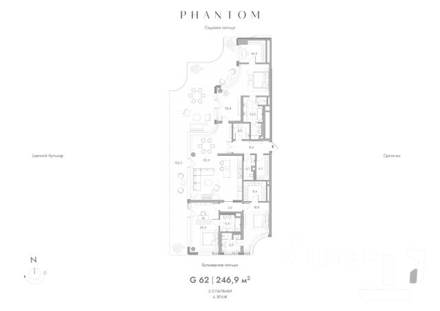 Представляем пентхаус на 9 этаже Резиденций PHANTOM. Общая площадь лота составляет 426,4 кв.м. и включает три мастер-спальни с собственной ванной и гардеробом, большую кухню-гостиную, кабинет, приватное патио, прачечную и гостевой санузел. В квартире выполнена финишная отделка с использованием натурального дерева и камня, ванные комнаты и кухни полностью оборудованы современной техникой и мебелью. Среди ее достоинств - окна на три стороны и дровяной камин в гостиной. Досконально выверенное планировочное решение создает функциональное и визуально легкое пространство. Высокие потолки и большие окна наполняют квартиру воздухом и светом. PHANTOM пространство абсолютного физического и эмоционального комфорта. Клубный дом класса deluxe, за футуристичными и плавными фасадами которого скрыт приватный мир, создающий идеальную среду для жизни. Преобладание белого цвета в экстерьере, сплошное остекление, неравномерный ритм террас и обтекаемость контура фасада создают эффект невесомости. Дом словно парит в воздухе. Мягкие природные линии фасада плавно переходят во внутреннее пространство здания. Здесь все сценарии жизни объединяются в высококлассной клубной инфраструктуре: собственный корт для падел-тенниса, терраса на крыше с открытым камином и дизайнерским водопадом, кинозал, сигарная, двухуровневый ивент-холл, библиотека, переговорная, панорамный фитнес зал, игровая и комната красоты. Внутренняя территория полностью закрыта от посторонних. Это природный оазис с водной архитектурой, зонами отдыха, уютными беседками и детской площадкой. Здесь легко отстраниться от городского шума и почувствовать комфорт. Подземный паркинг имеет удобный въезд для спорткаров и автомобилей представительского класса, зарядные станции для электромобилей, автомойку, комнату хранения велосипедов, келлеры и валет сервис. Вы всегда сможете оставить свой автомобиль у входа в лобби и получить его чистым в нужное время. Все машиноместа имеют увеличенную площадь. 3-комнатная квартира рядом с метро Чистые пруды.