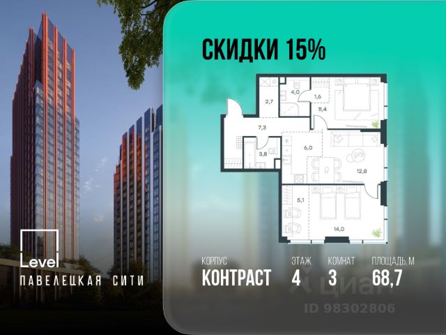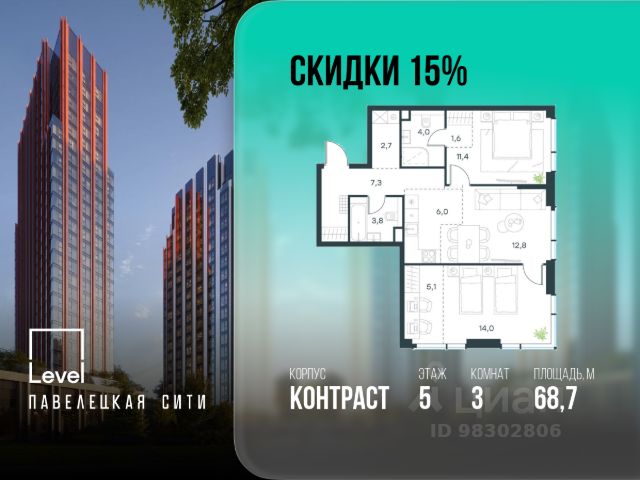 В Даниловском районе столицы (ЮАО) продаётся 3-комнатная квартира площадью 57.70 кв.м без отделки. Квартира расположена на 2 этаже 27-этажного корпуса 'Горизонт' в жилом комплексе бизнес-класса Павелецкая Сити. Высота потолков 3.00м. Престижная локация "Павелецкая Сити" - жилой комплекс бизнес-класса, расположенный в престижном Даниловском районе Москвы, на границе с ЦАО. Проект находится в историческом центре города в окружении парков, Москвы-реки и сформированной инфраструктуры. В пределах 20 минут пешком есть 3 станции метро, а в 5 минутах езды на авто - ТТК и Садовое кольцо. - 15 мин. пешком до метро "Павелецкая"; - 20 мин. пешком до станций "Тульская" и "Серпуховская"; - 8 мин. на авто до Кремля; - 10 мин. на авто до парка Горького и парка "Зарядье"; - 20 мин. на авто до башен "Москва-Сити". Авторская архитектура Архитектурная концепция разработана бюро СПИЧ по индивидуальному проекту. Облик корпусов I и II очередей отсылает к стилистике архитектуры классического Нью-Йорка и золотой эпохи Голливуда. Корпуса IV очереди вдохновлён эстетикой ар-деко в её современном переосмыслении. Благодаря линейному расположению корпусов из большинства квартир будут открываться потрясающие виды на исторический центр города и Москву-реку. Дизайнерские лобби Изысканные интерьеры лобби жилого комплекса отсылают к классическим фильмам золотой эпохи Голливуда. Классика в "Павелецкая Сити" - не имитация, а современное осмысление лучшего в этом стиле. В каждом вестибюле оборудованы стойки ресепшен, комфортные зоны ожидания, гостевые санузлы, мойки для лап животных, колясочные. В корпусах по 3-4 лифта, включая сервисный, с прямым доступом в паркинг. Площадь лобби - от 47,9 до 114,9 кв. м, высота потолков - до 5,46 м. Благоустройство и инфраструктура Для создания благоустройства было приглашено 2 ведущих бюро - ADM и GAFA. Разноуровневое пространство вмещает всё необходимое для качественного досуга: игровые площадки для детей всех возрастов, тропы здоровья для пеших прогулок, крытые аллеи с качелями, места для работы на свежем воздухе, многофункциональные спортивные площадки - воркаут-зоны, столы для пинг-понга, зоны командных игр. Общая площадь закрытого двора - 4,63 га. Комфорт - это когда рядом всё, что нужно для жизни. На первых этажах и в стилобатной части корпусов "Павелецкая Сити" размещены 85 коммерческих помещений, где откроются супермаркеты, кафе, пекарни, аптеки и другие службы сервиса. В составе проекта также предусмотрены собственный фитнес-клуб и развивающий центр Letovo Kids, а также школа на 720 мест и детский сад на 175 мест. Технологии и безопасность - Wi-Fi в лобби и на придомовой территории; - Автоматизированная система контроля и учета ресурсов; - Круглосуточное видеонаблюдение и охрана; - Круглосуточная связь с охраной через приложение, телефон или кол-центр; - Контроль доступа по биометрической системе Face-ID; - Усиленный сотовый сигнал в лифтах и паркинге; - Распознавание номеров автомобилей при въезде/выезде в/из паркинга. Продам 3-комнатную квартиру рядом с метро Добрынинская.