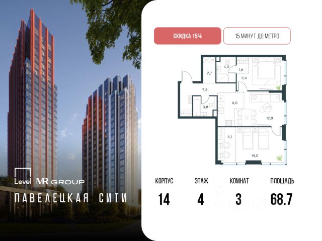 В Даниловском районе столицы (ЮАО) продаётся 3-комнатная квартира площадью 68.70 кв.м без отделки. Квартира расположена на 4 этаже -этажного корпуса 'Горизонт' в жилом комплексе бизнес-класса Павелецкая Сити. Высота потолков 3.00м.