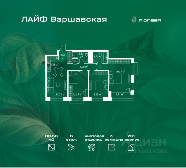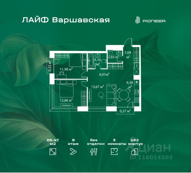 В районе Москворечье-Сабурово продается 3-комнатная квартира площадью 57.02 м². Она расположена на 9 этаже в 262 корпусе нового жилого квартала LIFE Варшавская. Площадь комнат: гостиная — 9,18 м² спальни — 11,18 м², 12,67 м² кухня — 8,85 м² ванная — 4,14 м² В LIFE Варшавская мы создали идеальные условия для жизни молодых людей и семей с детьми, тинейджеров и спортсменов, домохозяек и бизнесменов. Жилой квартал LIFE Варшавская удачно расположен: 5 минут до станции "Варшавская" 10 минут до станции "Каширская" 18-25 минут до парка-усадьбы "Коломенское", Битцевского леса и музея-заповедника "Царицыно" Богатая инфраструктура — это визитная карточка проекта. На территории работают детский сад на 160 мест и школа на 900 мест с IT-полигоном и мультифункциональным спортивным стадионом. В квартале разместились пешеходный бульвар, игровой плейхаб "Змейка", спортивный кластер с полями для футбола и волейбола, площадка для выгула животных. На первых этажах жилых домов открыты магазины, кафе и рестораны, салоны красоты, арт-галереи, сервисы бытовых услуг, медицинские центры. Концепция жилого квартала создана ведущими архитектурными бюро. Структуры малоэтажных кварталов дополняются высотными башнями-доминантами. Такой тип застройки позволил сформировать освещенную приватную территорию.