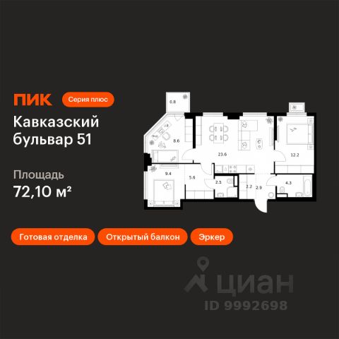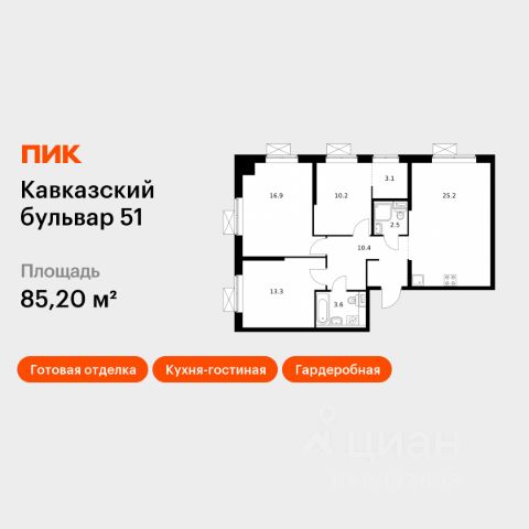Продается трехкомнатная квартира 292 в новостройке ЖК "Русич Кантемировский" по адресу Москва, ЮАО, Царицыно, Кавказский бульвар, вл. 51/2, корп. 2. Общая площадь квартиры - 71.00 кв. м., этаж 22 из 26, секция 2. Тип проекта, по которому построен дом - монолит, компания-застройщик - Концерн "Русич". Стоимость квартиры - Р. Срок сдачи - 1 квартал 2026. Более подробная информация по телефону. Современный жилой комплекс класса бизнес-лайт "РУСИЧ Кантемировский" удачно расположен в обжитом районе Царицыно всего в 15 минутах пешком до двух станций метро. Удобное расположение рядом с трассой ЮВХ и Варшавским шоссе позволяет добраться до МКАД всего за 17 минут, а развитая инфраструктура района вместе с комплексным подходом к наполнению жилого квартала делает это место идеальным для жизни. Проект включает в себя шесть элегантных корпусов, высота которых варьируется от 17 до 32 этажей. Каждый фасад - это результат авторской архитектурной мысли, а дизайнерские лобби встречают вас атмосферой уюта и стиля. Премиальные отделочные материалы и передовые инженерные решения подчеркивают высокое качество жизни в этом комплексе. Концепция "двор без машин" создает безопасную и спокойную атмосферу: внутренние пространства огорожены и оснащены видеонаблюдением, а для автолюбителей предусмотрен современный паркинг на 291 машино-место. Дворы комплекса обещают стать настоящим оазисом: здесь появятся живописные прогулочные аллеи, уютные зоны для пикников и разнообразные спортивные и детские площадки. Центральная площадь с фонтаном, перголами и цветочными композициями станет излюбленным местом для встреч и отдыха. Еще одним значительным преимуществом является собственная школа на 900 мест и два детских сада, вмещающие 400 малышей. Вам не придется тратить много времени на покупки - рядом уже работают супермаркеты, рестораны и спортивные клубы, предлагая все необходимое для комфортной жизни. Жилой комплекс "РУСИЧ Кантемировский" гармонично сочетает в себе преимущества городской жизни и природную тишину. Всего в нескольких шагах от вашего нового дома раскинулся живописный заповедник "Царицыно", а также парки "Сосенки" и "Аршиновский", где можно насладиться свежим воздухом и спокойствием природы.