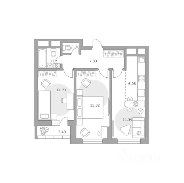 Продаётся 3-комнатная квартира 739, площадью 58,25 м², на 20 этаже в ЖК "Ильинойс" корпус 2. Стоимость — от 18504794 руб. Квартира с отделкой, планировка односторонняя, окна во двор.