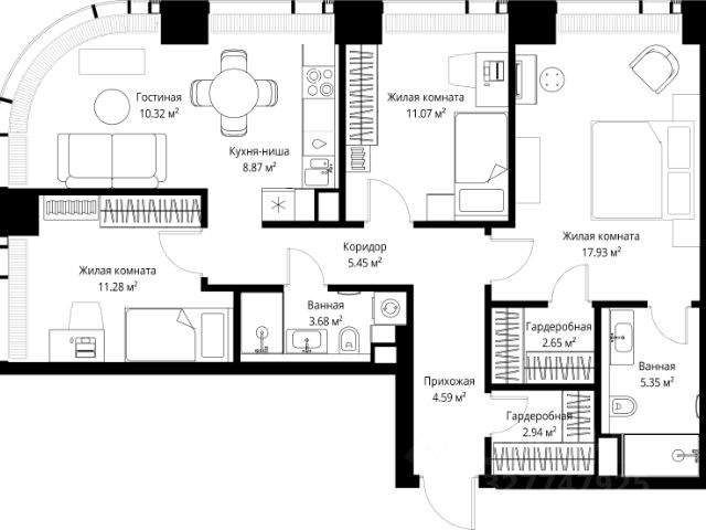 Прямая продажа от застройщика. В ЖК Сет продается 3-комнатная квартира площадью 75.18 м², расположенная в корпусе А, на 28 этаже 52 этажного дома. Сет имеет стратегически выгодное расположение в ЗАО, в районе с большой историей и блестящим будущим: между природной зоной долины реки Сетунь и Кутузовским проспектом. В рамках возведения первой очереди предусмотрено три корпуса высотой 18, 45 и 59 этажей. На верхних этажах спроектированы общедоступные смотровые площадки с панорамным обзором на центр столицы. Преимущества проекта: • Функциональные планировочные решения • Контроль проникновения через входную дверь • Система управления освещением и температурой в квартире • Система защиты от протечек с функцией перекрытия воды • Вход в подъезд по биометрическим считывателям Face ID • Скоростные лифты • Двухуровневый подземный охраняемый паркинг на 495 машино-мест Застройка Сет включает в себя не только жилые корпуса, но и инфраструктурные объекты. Все необходимое для повседневного комфорта будет расположено в шаговой доступности: • Фитнес-Клуб с бассейном • Ведущая городская школа, детский сад и школа искусств • Центр культуры и досуга • Медицинский центр • Кафе и рестораны Расположение комплекса: Пешком: • Метро "Давыдково" - 17 минут • Парк "Долина реки Сетунь" - 3 минуты • Открытие новых станций метро в шаговой доступности в будущем Инфраструктура: Разнообразить свой день резиденты Веер смогут также проводя больше времени на свежем воздухе. Двор разделен на 4 зоны разных эмоций и действий, которые пересечены и соединены веерными прогулочными маршрутами: • Спортивная площадка устроена в глубине ""Кленовой рощи"" • В ""Чайном домике"" будет создан навес с утеплением для отдыха в любую погоду • Площадки для детей воплотятся в ""Волшебный лес"" с цветами, зеркалами и световым дизайном • ""Центральная площадь"" устроена у водного оазиса живописного пруда. На машине: • "Москва-Сити" - 15 минут • Садовое кольцо - 20 минут • ТЦ "Океания" - 8 минут • ТЦ "Времена года" - 13 минут • Сколково - 12 минут • Гребной канал - 17 минут Компания MR предлагает своим клиентам специальные условия приобретения квартир в рамках программ ипотечного кредитования от банков-партнеров.