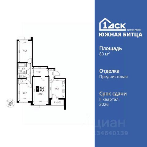 Прямая продажа от застройщика! Семейный жилой район класса Комфорт Плюс Продаётся 3-к квартира номер 581 общей площадью 84.1 кв.м. на 14-м этаже 23 этажного здания. Отделка Whitebox. Цена с учётом скидки. Особенности квартиры: - Гостевой санузел - комфорт и удобство для ваших гостей. - Просторная кухня - место для семейных ужинов и кулинарных экспериментов. - Гардеробная - удобство для хранения и организации вещей. - Ниша под шкаф - компактное и удобное место для вещей. - Лоджия - уютное место для отдыха и тишины. - Панорамное остекление лоджии - открывает вид на окружающий мир. Квартира с предчистовой отделкой (White box). Вам не придется заниматься черновыми и трудоёмкими работы, а чистовую отделку и дизайн - сделайте на свой вкус. Информация о комплексе: Сочетание свободного перемещения по внутреннней территории без машин и ощущения абсолютной безопасности благодаря надежным ограждениям - вот что отличает ЖК Южная Битца. На территории комплекса созданы все условия как для активного образа жизни, так и для спокойного времяпрепровождения. Свободно перемещайтесь по внутренней территории в безбарьерной среде! Продуманное зонирование во дворах позволяет отделить тихие зоны для родителей со спящими младенцами и тех, кто хочет почитать на свежем воздухе, от шумных игровых зон. Игровые зоны учитывают возраст детей. Площадки для детей старшего возраста вынесены за пределы дворов. Ощущение уютного дома должно начинаться с подъезда. Мы постарались предусмотреть все нюансы, чтобы наши лифты отвечали самым строгим современным требованиям. А наличие кладовых позволит вам поддерживать идеальный порядок и уют в вашей квартире! Транспортная доступность: В 3 км от МКАД в нескольких минутах езды до трех станций метро: Аннино, Бульвар Дмитрия Донского, улица Старокочаловская и станции МЦД2 - жд Бутово. Внутренняя инфраструктура: Для жителей жилого района "Южная Битца" доступна развитая инфраструктура близлежащих московских районов Чертаново, Южное, Бирюлёво Западное, Северное Бутово и Южное Бутово. Множество образовательных учреждений, объекты здравоохранения, торговые и развлекательные центры, кинотеатры, кафе, рестораны, парки.
