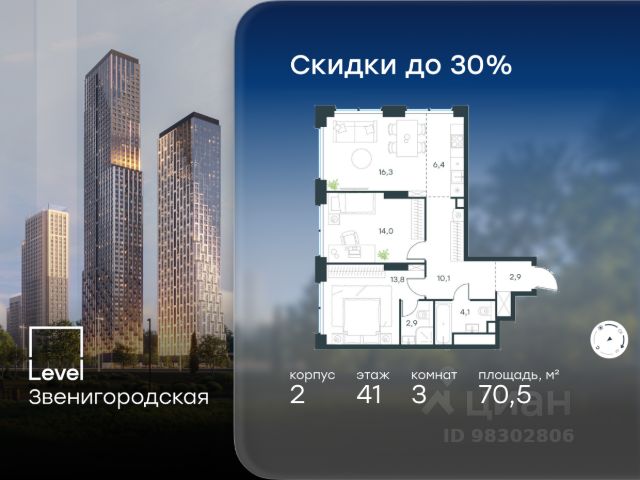 10 минут от Москва-Сити В продаже квартира площадью 121.62 м² без отделки на 15 этаже 46 этажного дома. Квартира расположена в корпусе Leo. JOIS это премиальный жилой комплекс от девелопера MR в районе Хорошёво-Мнёвники. Он включает несколько эффектных небоскрёбов высотой 47-56 этажей, эксклюзивные форматы квартир с панорамным остеклением, подземный двухуровневый паркинг на 239 м/м, собственную приватную инфраструктуру, закрытый ландшафтный парк 2,3 Га с функциональным зонированием и охраняемой территорией. Над проектом работали лучшие команды международных агентств с многолетним опытом: Genpro, S&P, iLight International и другие. Расположение Пешком: - 5 мин. ст. МЦК "Хорошёво"; - 15 мин. ст. м. "Народное ополчение"; - 10 мин. ст. метро "Звенигородская" с 2027 года; - 20 мин. причал "Карамышевский". На автомобиле: - 3 мин. до Звенигородского шоссе; - 5 мин. до ТТК: - 8 мин. до Серебряного бора и Строгинского затона - 10 мин. до ММДЦ "Москва-Сити"; - 40 мин. до аэропорта "Шереметьево"; Благоустройство - собственный ландшафтный парк 2,3 Га; - парк скульптур от Cosmoscow; - консьерж-сервис 24/7; - сервисный лифт и вход; - игровые и спортивные площадки; - коворкинг с библиотекой; - лаунж-зона с камином; - игровые комнаты для детей и клуб для подростков с оборудованием для видеоигр; - спортивная студия для индивидуальных тренировок; - гостиная с мини-кухней; - зоны для выгула собак; - подогрев пешеходных дорожек в зимний период; - автополив зелёных насаждений; - премиальные рестораны, кафе, химчистки, аптеки и супермаркеты. Окружение - 4 парка: Покровское-Стрешнево, Филёвский парк, Серебряный бор и Берёзовая роща; - 15 общеобразовательных заведений, в том числе две школы из самых лучших в Москве: государственная школа "Интеграл" и частная "Хорошкола"; - спортивное сооружение "ВЭБ Арена", домашний стадион ФК ЦСКА; - крупнейший в Европе торгово-развлекательный центр "Авиапарк".