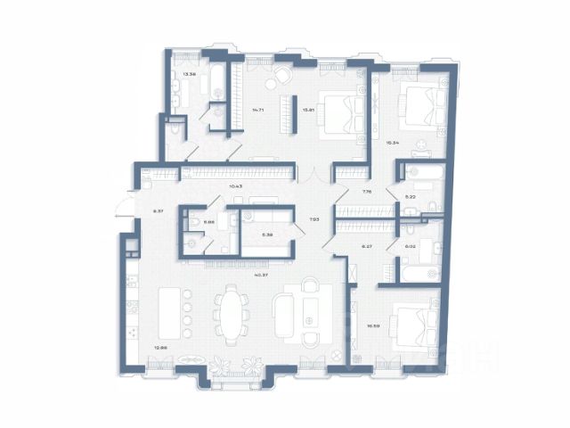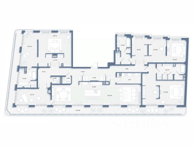 Одна из двух самых просторных квартир в доме: Пентхаус с 3 спальнями, 292 м2, 7 этаж Клубного дома TURGENEV.