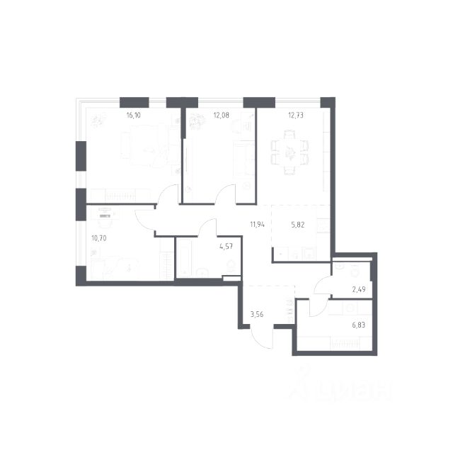 Продаётся 3-комнатная квартира 15, площадью 69,55 м², на 4 этаже в ЖК "Пехра" корпус 8.1. Стоимость — от 12969442 руб. Квартира без отделки, планировка угловая, окна во двор.