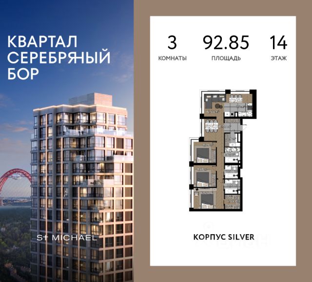 Однокомнатная квартира площадью 64,6 кв.м. на 9 этаже дома бизнес-класса "CRYSTAL Трилогия". Жилой комплекс CRYSTAL Трилогия комфорт в сердце Хорошево-Мнёвников Удобное расположение и транспортная доступность CRYSTAL Трилогия расположен в престижном районе Хорошево-Мнёвники, на улице Генерала Глаголева, всего в нескольких минутах от живописного Серебряного бора и набережной Москвы-реки. Из окон открываются панорамные виды на воду и зелёные зоны, создавая ощущение гармонии с природой. Автомобильная доступность • Звенигородское шоссе и проспект Маршала Жукова быстрый выезд в любую часть города. • 7 км до ТТК, 9 км до МКАД, 10 км до Садового кольца. • Общественный транспорт: • Ближайшая станция метро "Народное ополчение" (2 км). Добраться можно пешком или на автобусе. • В пешей доступности строятся 3 новые станции метро, что повысит транспортную связанность района. Инфраструктура: всё для жизни в шаговой доступности Комплекс входит в состав масштабного квартала Union Park (40 га) это современная городская среда с продуманной инфраструктурой. Образование и развитие: • Лучшие школы Москвы: 1515, 1517, 138, Курчатовская школа. • Детские сады: "Wow Kids Серебряный бор", логопедический "ДАРвиль". • Музыкальная школа им. В. В. Андреева. Медицина и спорт: • Поликлиника "Семейный доктор", медцентр "Мед-Лайт", стоматология. • Спорткомплекс "Серебряный" с бассейном, тренажерным залом и солярием. Магазины и рестораны: • Премиальные магазины: "Азбука вкуса", "ВкусВилл", "Лента", "Магнолия". • Рестораны и кафе: Asia Inn, Wells Home Cafe, рыбный ресторан The Mope. Футуристичная архитектура с продуманным комфортом CRYSTAL Трилогия это уникальный дизайн и эргономичные планировки: Внешний облик: • Кристаллическая архитектура с панорамными эркерами и фасадами в оттенках горького шоколада. • Трехуровневая структура, где на верхнем ярусе вы увидите геометрические эркеры с панорамным остеклением, на среднем уровне расположены квартиры с окнами на 1-2 стороны, а на нижнем отделка австрийским клинкерным кирпичом. Внутреннее пространство: • Светлые входные группы с лаунж-зонами для отдыха и мероприятий. • Подземный паркинг (по машиноместу на квартиру) и кладовые для хранения. • Закрытые дворы с спортивными зонами: • Теннисный корт. • Площадки для воркаута. • Беговые дорожки. • Поле для игровых видов спорта. Квартиры с продуманными планировками • 14 комнатные варианты. • Высокие потолки и панорамное остекление для максимальной инсоляции. • Ровные стены и черновая/чистовая отделка на выбор. • Готовые решения для комфортного заезда.