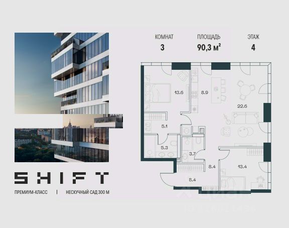 3-к квартира в премиальном комплексе SHIFT на 3-м этаже в 18 этажном здании. Общая площадь 85 кв. м. SHIFT - новый премиальный проект от девелопера PIONEER в Донском районе, в 300 м от Нескучного сада. Главная особенность проекта - 5 башен, в которых воплощен принцип модульной архитектуры: каждый этаж смещен относительно предыдущего, что создает эффект парящих в воздухе граней. Архитектура SHIFT создана самым востребованным бюро Москвы - "Цимайло Ляшенко и Партнеры". У жилого квартала удобное расположение: Ленинский проспект ведет прямо к Садовому кольцу и в центр, а быстрый выезд на ТТК станет ключом к любому району Москвы. Многообразие сервисов и коммерческих помещений создает в SHIFT всю необходимую инфраструктуру: кафе и рестораны, street retail, супермаркет и многое другое. Преимущества проекта: - Потолки от 3,65 м - Панорамные окна и террасы - Приватный ландшафтный двор-парк 4 000 м2 - Коммерческая инфраструктура 4 000 м2 - Клубная инфраструктура 350 м2 Девелопер: За 24 года на рынке недвижимости компания PIONEER реализовала более 30 проектов. Сегодня PIONEER - девелопер премиальной недвижимости с 4 проектами класса премиум и deluxe. Звоните, и мы с удовольствием расскажем все подробности о проекте и условиях покупки. Продажа от застройщика. Покупка доступна в ипотеку. Продается 3-комнатная квартира рядом с метро Шаболовская.