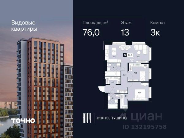 ЮТУ-камерные небоскребы бизнес-класса с исключительной архитектурой, видовыми квартирами и подходом к большой воде-благоустроенной набережной канала имени Москвы. Проект ЮТУ создает идеальный баланс жизни в городе. Это приватный оазис, где в любой момент можно сменить контекст и выбрать любой из тысячи маршрутов к активному отдыху и ярким впечатлениям. Локация премиум-класса • Первая линии в прибрежной части Химкинского водохранилища • Исключительно тихий и зелёный район Южное Тушино • За 2 минуты можно спуститься к воде, за 10 минут найти зеленые парки и готовую инфраструктуру, за 30 минут доехать до Кремля Концепция проекта • Две футуристичные башни, соединенные торговой галереей от бюро ATRIUM • 60 неповторяющихся планировок: квартиры с угловым "плавным" панорамным остеклением, мастер-спальнями и гостиными до 39м² и просто очень большие квартиры площадью до 128,6 м² • Беспрецедентная коллекция видов-в проекте 80 % видовых квартир Чувство эксклюзивности • Своя приватная жилая экосистема -только для резидентов домов • Лаунж-терраса на крыше • Пространство скрыто от посторонних глаз-с трех сторон его окружают строения проекта Прогрессивные технологии • 3-уровневая система безопасности (Face ID, BLE-метки, видеонаблюдение) • Умный паркинг с распознаванием номеров Проект федерального девелопера ТОЧНО-из ТОП-3 застройщиков России. Компания в проекте реализует ответственный подход к развитию пространств для благополучной жизни человека. И что в ЮТУ особенное воплощение приобретает концепция человекоцентричности, как заметная грань девелопмента ТОЧНО. Продается 3-комнатная квартира рядом с метро Сходненская.