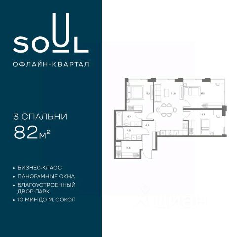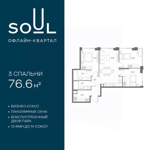 Цены указаны с условием 100% оплаты и стандартной ипотеки. Прямая продажа от застройщика! Продается 3-к. квартира квартира номер 575 общей площадью 76.6 кв.м. на 3-м этаже 24 этажного дома, Корпус 9. С отделкой White Box Max. Проект бизнес-класса SOUL от девелопера FORMA. До метро Сокол 10 мин пешком. Архитектура от британского бюро SimpsonHaugh. Благоустройство дворов — Gillespies. Центральная площадь с фонтанами и местами для отдыха. Оборудованные детские и спортивные площадки. В центре проекта объект культурного наследия — общественное пространство Изофабрика, построенная в 30-х годах по проекту архитектора Георгия Гольца. Здесь будут располагаться мастерские для взрослых и детей, образовательный центр, рестораны и кафе. Квартиры с панорамными окнами, французскими балконами, мастер-спальнями и гардеробными. Высота потолков от 3,1 м. На последнем этаже 3,5 м. В проекте 2 детских сада на 100 и 200 малышей. Фит-рум, коворкинг, дизайнерские лобби, подземный паркинг и келлеры. 3-комнатная квартира рядом с метро Сокол.