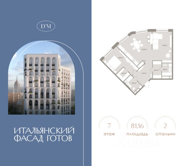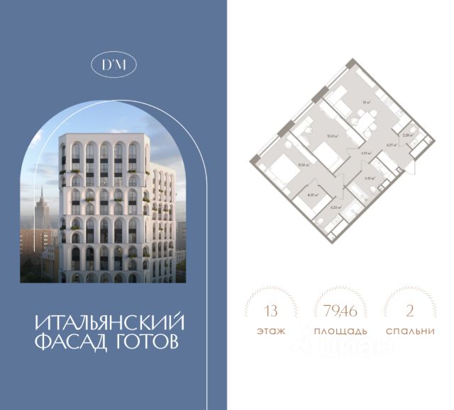 Продаются 3-комнатные апартаменты в строящемся доме (Корпус 1), срок сдачи: II-кв. 2026, общей площадью 79.88 кв.м., на 4 этаже. D`ORO MILLE - клубный апарт-комплекс премиум-класса в Дорогомилово. Его архитектура отсылает к величественным образцам древнеримского зодчества и в то же время, благодаря необыкновенной легкости, утонченности рисунка фасадов, устремлена в будущее. Весь его облик, все 14 этажей - это череда стройных воздушных арок, создающих ритмическую гармонию. И, если архитектура - это искусство, то клубный дом D`ORO MILLE, безусловно, произведение этого искусства, арт-объект. Причем не только снаружи: такую же высокую эстетическую планку держат внутри здания изысканные интерьеры общественных пространств, а на приватной территории комплекса - эффектный двор-сад. Клубный дом D`ORO MILLE - это искусство жить: роскошно, гармонично, идеально. Все здесь служит идее создания нового формата жилья - комфортного, функционального, безупречного. Клубный дом D`ORO MILLE находится в районе Дорогомилово. Это престижный исторический район Москвы, который обладает высокоразвитой инфраструктурой: здесь есть все необходимое для жизни, работы, отдыха. Всего в 400 м от клубного дома D`ORO MILLE проходит Кутузовский проспект - одна из главных магистралей столицы и имиджевый торговый коридор, где представлены бутики популярных брендов, рестораны, кафе, отделения банков, салоны красоты и т. д. В радиусе 300 м находятся Дорогомиловский рынок и крупные торгово-развлекательные комплексы "Европейский", "Киевский". Дорогомилово входит в Западный округ столицы, но находится практически в ее центре. По Москвереке он соседствует с Арбатом, Хамовниками, Пресненским районом. И, благодаря мостам, за считанные минуты из Дорогомилова можно доехать до Садового и Бульварного кольца, до ММДЦ "МоскваСити" и Кремля, до ЦУМа и ГУМа, до самых известных театров, галерей, музеев. 3-комнатная квартира рядом с метро Студенческая.