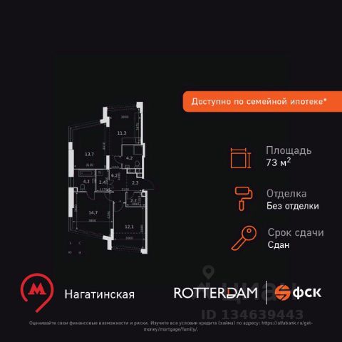 Прямая продажа от застройщика! Жилой Комплекс бизнес-класса. Продаётся 3-к квартира номер 260 общей площадью 69.9 кв.м. на 9-м этаже 28 этажного здания. Без отделки. Цена с учётом скидки. Особенности квартиры: - Мастер-зона с санузлом и гардеробной. Всё для вашего комфорта и удобства, включая личный санузел и гардероб. - Угловая планировка - больше пространства для ваших идей. - Мало квартир на этаже - уединение и тишина. - Окно в ванной - натуральное освещение для уюта и комфорта. - Увеличенная ширина окна/окон - больше света и визуального простора. - Увеличенное количество окон - дополнительное освещение и свежий воздух. - Окно над кухонным фронтом - светлое и удобное пространство для готовки. - Угловое остекление - свет и воздушность в каждой комнате. - Гостевой санузел - комфорт и удобство для ваших гостей. - Душ помимо ванной - дополнительное удобство для вашей семьи. - Гибкая планировка - создайте пространство по своему вкусу. - Место для игры/занятия спортом - идеальное пространство для активных детей. - Просторная мягкая зона - комфорт и уют для отдыха всей семьи. - Линейная кухня - функциональность и практичность в одном решении. - Возможность добавить спальное место - дополнительный комфорт для гостей. - Гардеробная - удобство для хранения и организации вещей. Информация о комплексе: В ЖК Роттердам отличное расположение, которое позволит вам выбирать свой сегодняшняшний маршрут и транспорт исходя из настроения, целей и погоды. Отсюда удобно добираться в центр как на метро станция находится в пешей доступности, так и на автомобиле. Варшавское шоссе связывает жилой комплекс с ТТК, а через Люсиновскую и Мытную улицы с Садовым кольцом. В качестве альтернативного маршрута можно использовать Нагатинскую набережную: дорога вдоль Москва-реки приведет к Кремлю и Павелецкому вокзалу. Для неспешной поездки предусмотрены трамвайные маршруты, а в теплое время года веломаршруты вдоль реки. Транспортная доступность: Всего в 5 минутах пешком до метро Нагатинская и 8 минутах от МЦК Верхние Котлы. Рядом Аэроэкспресс до метро Домодево. До ТТК 2,2 км и 4,9 км до Садового кольца. Внутренняя инфраструктура: Если вы ищете идеальный баланс между отдыхом и работой и обладаете активной жизненной позицией - ЖК Роттердам вам понравится. В ЖК: зоны коворкинга, плейхаб и детские площадки для отдыха всей семьей. Близость к деловому центру Москвы, в окружении 5 парков, рядом спортивные и развлекательные центры Если вы любите живописные виды и долгие прогулки - ЖК Роттердам - отличный вариант для вас, так как он расположен прямо на Нагатинской набережной с выходом на Москву реку! В ЖК Роттердам соблюден баланс между высоткой и малоэтатажным зданием, которое не потеряло ощущение уюта и не создает впечатление городских джунглей Если вы любите быть на высоте и без ограничений - выбирайте верхние этажи Для тех, кто ценит комфорт и собственное время Для тех, кто ценит комфорт и личное пространство Для тех, кому важен комфорт, Купить 3-комнатную квартиру в районе Нагатино-Садовники в Москве.