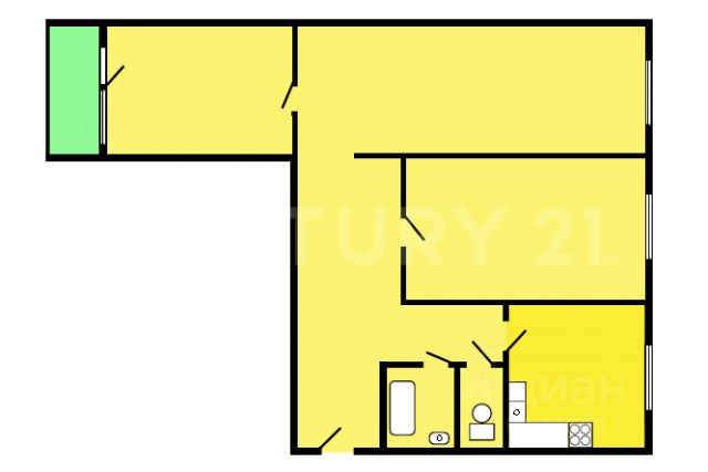 Жилая площадь: 45,2 кв. м (комната 1 - 11,5 кв.м, комната 2 - 19,8 кв.м, комната 3 - 13,9 кв.м)