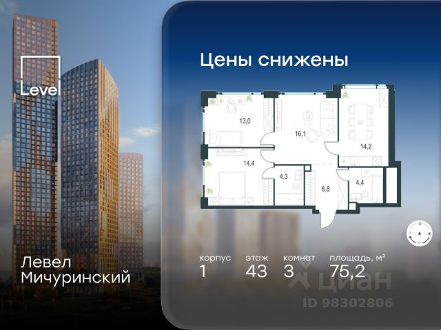 Цена указана с учётом скидки при 100%-й оплате, несубсидированной ипотеке, рассрочке (кроме программы "Рассрочка 0%"). В жилом квартале, расположенном на границе с природным заказником "Долина реки Очаковки", продаётся 3-комнатная квартира площадью 60.40 кв.м без отделки. Квартира расположена на 7 этаже 42-этажного корпуса 2 в жилом комплексе бизнес-класса Левел Мичуринский (компания Level Group/Левел групп). Отличная транспортная доступность: - от 10 мин. пешком до станции метро "Мичуринский проспект" - 15 мин. пешком до станции метро "Аминьевская" - 7 мин. на авто до МКАД - 10 мин. на авто до ТТК - 15 мин. на авто до Москва-Сити Продуманный архитектурный проект: - Выразительная архитектура от известных бюро: корпуса 1-6 - бюро СПИЧ, корпуса 7-13 - архитектурное бюро Анатолия Борисова; - Из окон открываются живописные виды на парки, Москва-Сити и МГУ; - Высокие потолки до 6,35 м; - Стильные лобби с окнами в пол и высокими потолками до 4,7 м; - С каждого этажа дома на лифте можно спуститься в подземный отапливаемый паркинг. Расположение: Жилой комплекс Левел Мичуринский строится в одном из самых зелёных районов Москвы - Очаково-Матвеевское. Этот уголок столицы идеален для поддержания здорового образа жизни. В шаговой доступности от проекта находятся заказник "Долина реки Очаковки" - 1 мин. пешком и Очаковский парк - 7 мин. пешком. На велосипеде можно добраться до таких парков, как "Событие", парк Олимпийской деревни, парк 50-летия Октября и парк Школьников. В 15 минутах езды на авто расположено более 30 детских садов (из них 14 в пешей доступности), 32 школы (из них 13 в пешей доступности) и 14 вузов. Также в ближайшем окружении - более 25 медицинских учреждений, 11 спортивных клубов и 22 продуктовых супермаркета. Внутренняя инфраструктура: На территории жилого комплекса строится три детских сада и школа. На первых этажах домов откроется супермаркет, фитнес-центр, ресторан, кафе и другие сервисы. Подземные этажи займут паркинги: трёхуровневые - в этапах 1 и 2, одноуровневый - в этапах 3 и 4. Преимущества проекта: - 4,5 га благоустроенной территории с видовым мостом, уличным кинотеатром, зонами для тихого отдыха, работы, уличных тренировок, площадки для петанка, футбола, настольного тенниса и пляжного волейбола. - Дизайнерские лобби с панорамным видом на двор, мойками для лап животных и комфортными зонами ожидания. - Безопасность жителей: круглосуточное видеонаблюдение всех зон общего пользования (лобби, лифты, паркинги, детские площадки), система контроля доступа, управление видеодомофоном через мобильное приложение, единый ключ доступа на территорию жилого комплекса. - Технологии и комфорт: высокоскоростной вайфай в лобби и на придомовой территории, автоматическая система контроля и учёта ресурсов, абонентская связь с консьержем, распознавание номеров автомобилей при въезде в паркинг и выезде из него. 3-комнатная квартира на улице Озерная в Москве.